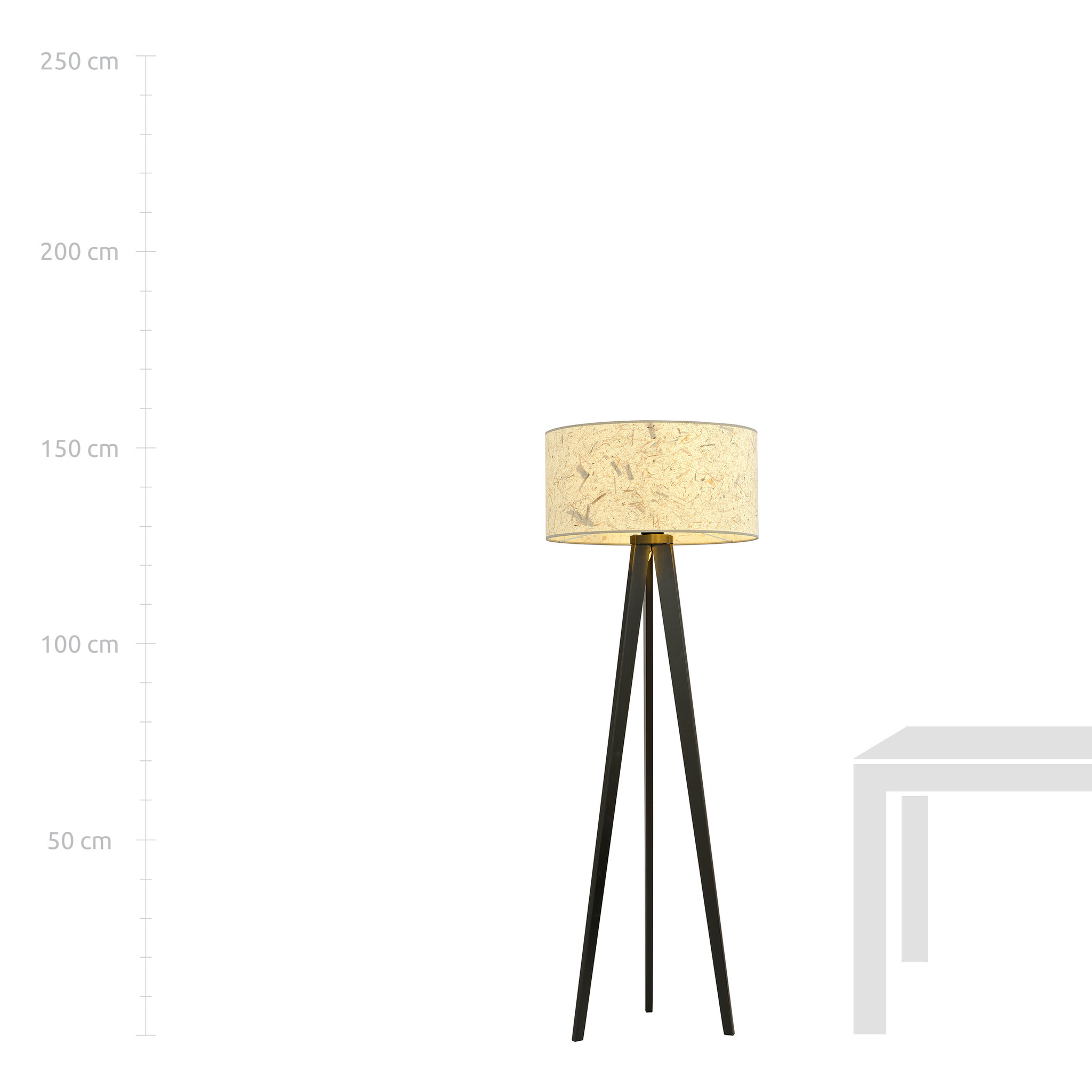 Lámpara de pie Greve de 3 patas con robusta pantalla textil tubo 1x E27