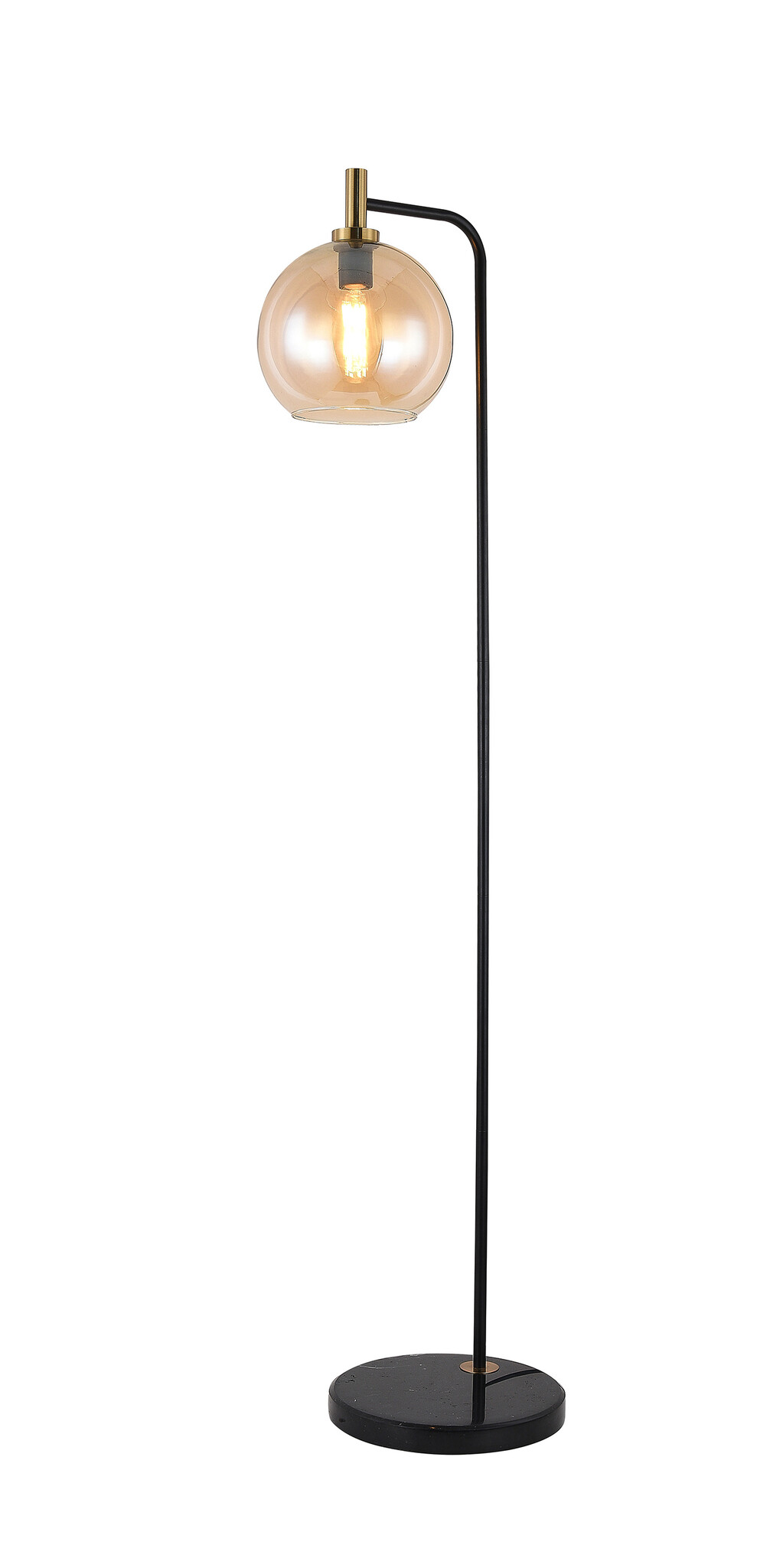 Lámpara de pie Iris E27 Negro + oro, cristal ámbar Ø250mm