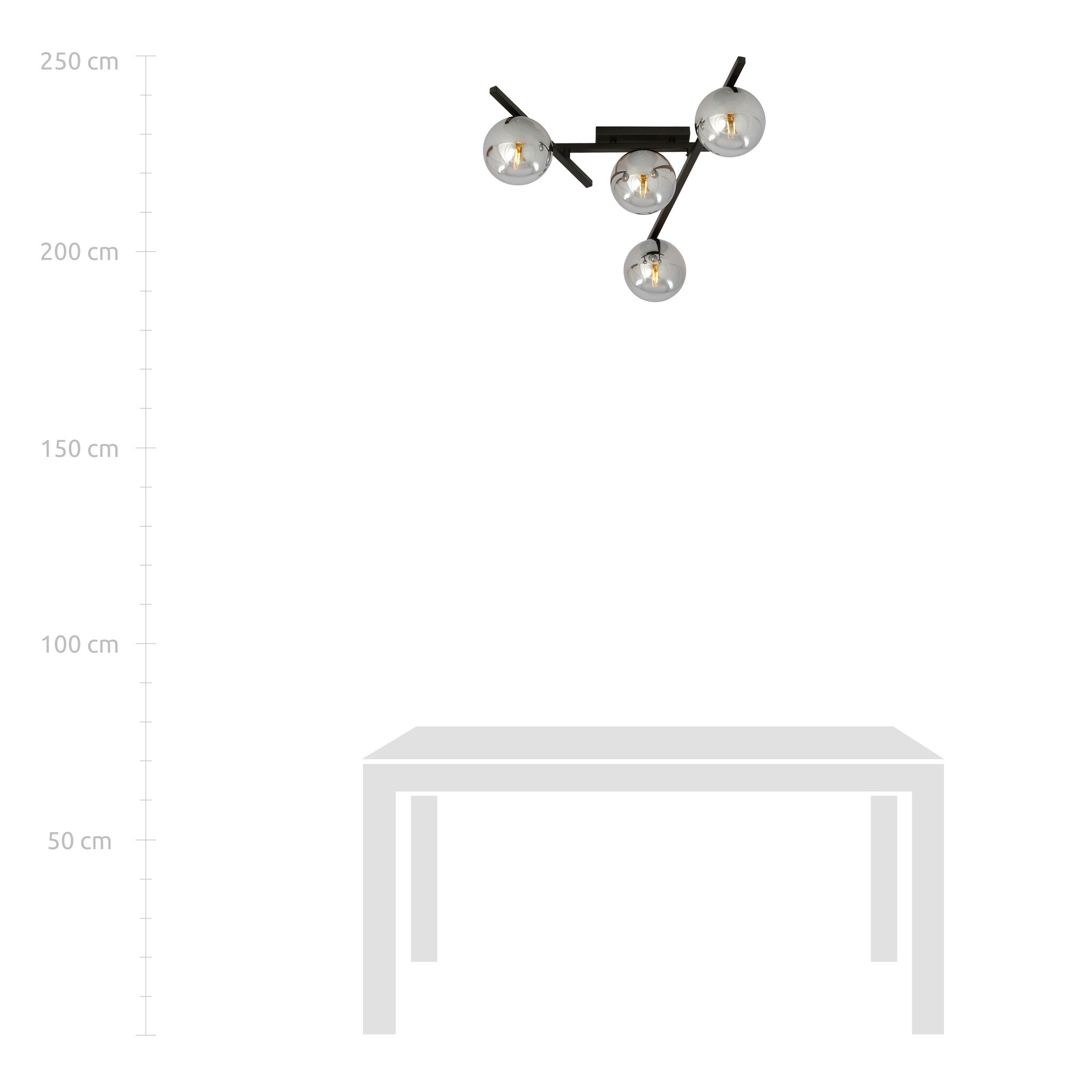 Especificaciones Lámpara de techo de metal y cristal con 4 esferas de cristal ahumado: