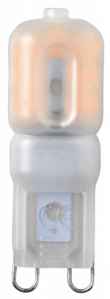 Esta lámpara LED G9 de 2,5W es el equivalente a una lámpara halógena G9 de +/- 28W. Esta lámpara LED G9 de 2,5W regulable está presente principalmente en lámparas de araña o apliques y suele haber una gran cantidad de ellas. ¡Tus ahorros son enormes! Además, la vida útil también es mucho más larga. Puedes obtener esta lámpara LED G9 de 2,5W en color de luz blanco cálido (2700 Kelvin). El índice de reproducción cromática es superior a 80, lo que hace que la luz sea casi igual a la luz halógena. El diámetro de esta lámpara LED G9 de 2,5 W es de 15 mm y la altura es de 45 mm.
