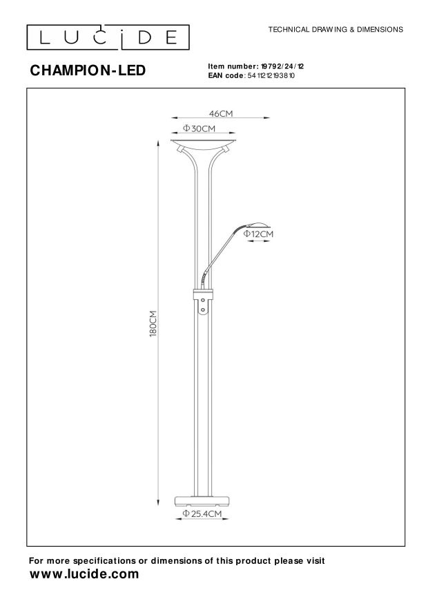 Especificaciones Lucide CHAMPION-LED - Lámpara de lectura - LED Dim. - 3000K - Cromo mate: