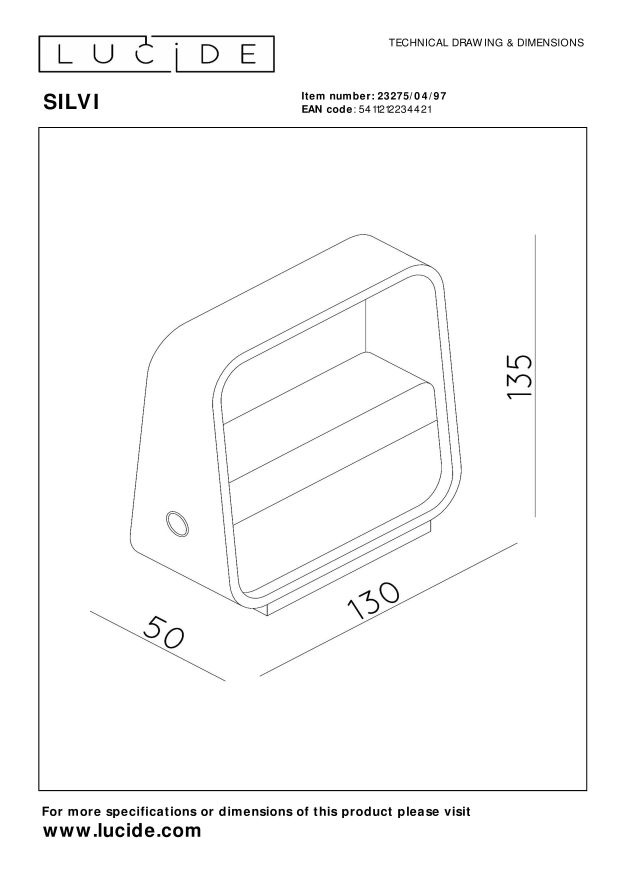 Especificaciones Lucide SILVI - Aplique Recargable - Accu/Batería - LED Dim. - 1x3,7W 2700K - Marrón óxido: