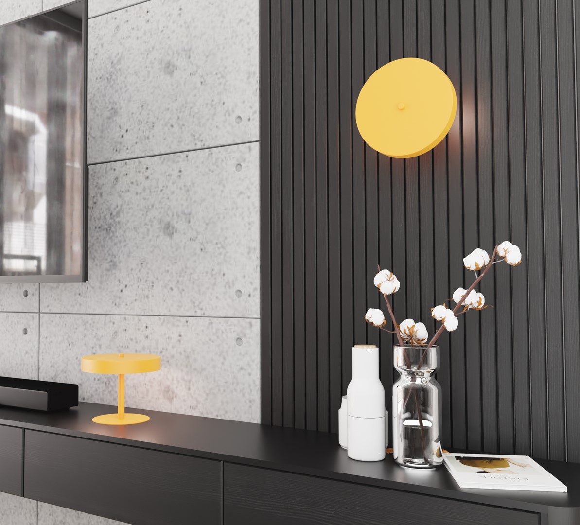 El aplique de pared NEMO es una solución de iluminación elegante y minimalista con un diseño geométrico. Su forma redonda y plana en negro mate añade un toque moderno al interior, complementando perfectamente los arreglos de estilo industrial y loft.