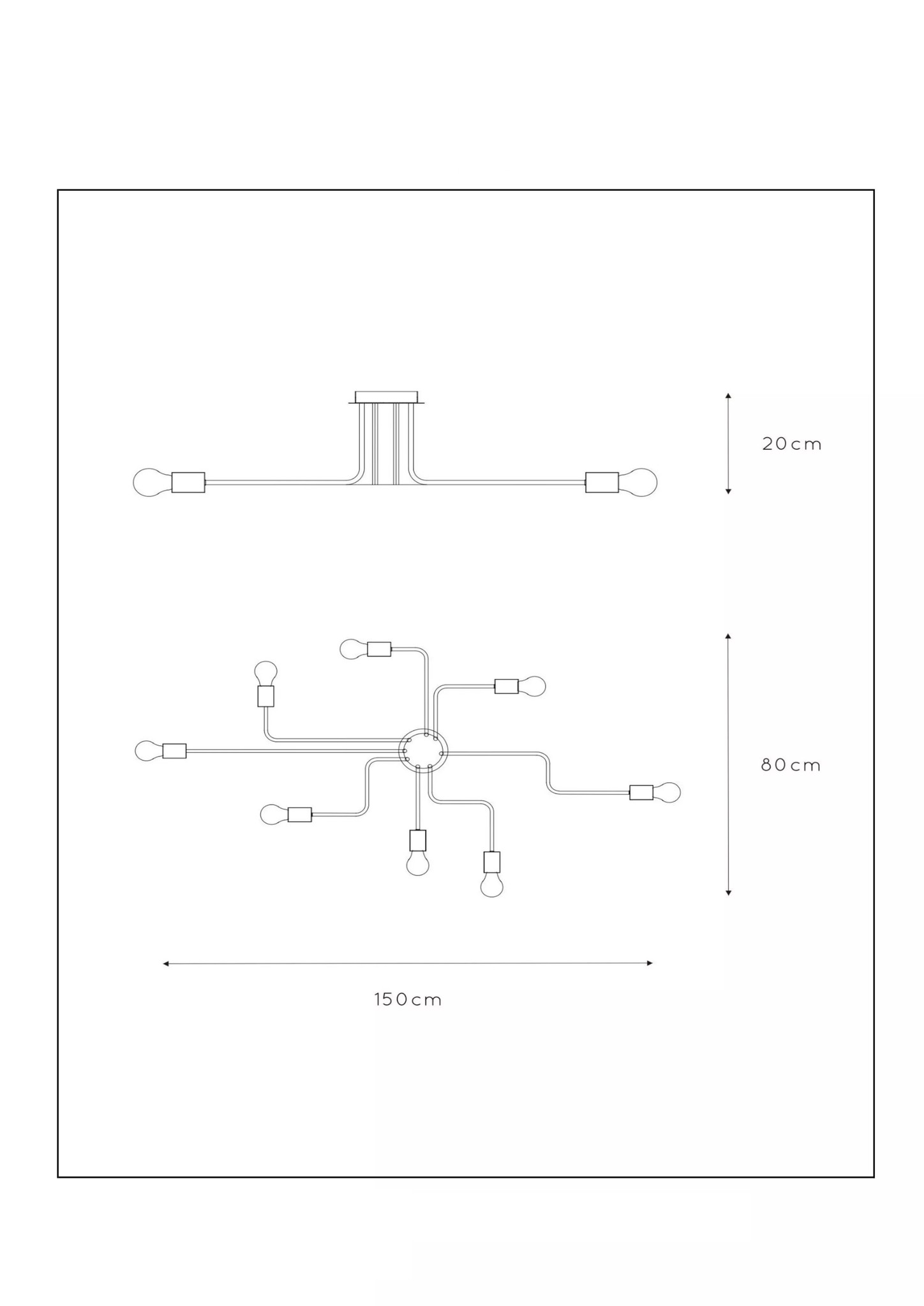 El ancho de esta lámpara de techo tentáculo es de 80 cm, la longitud es de 150 cm; la altura es de 20 cm.