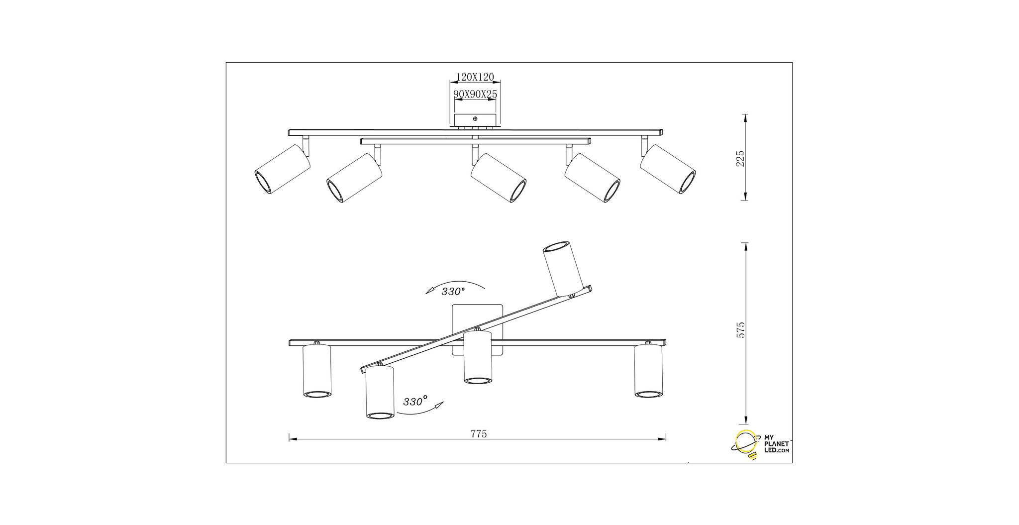 Especificaciones plafón giratorio asimétrico 5xGU10 blanco: