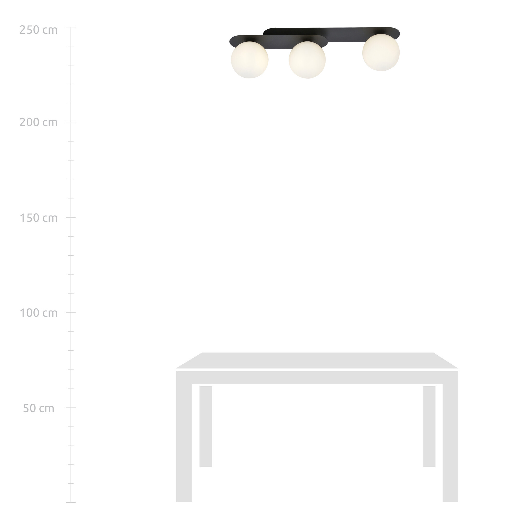 Plafón triple ovalado Randers negro con 3 bombillas cristal blanco E14