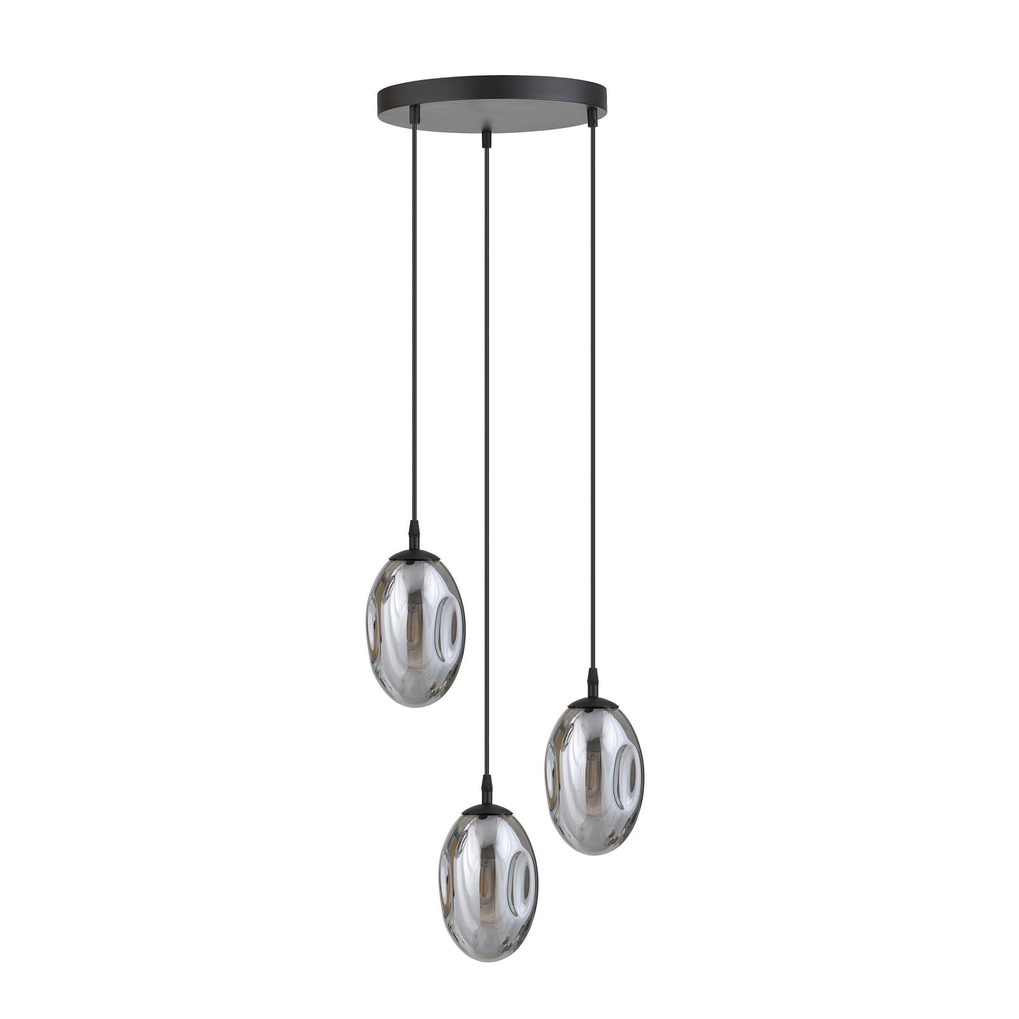 Especificaciones hermosa lámpara colgante negra de 3 luces con vidrio ahumado soplado 3x E14: