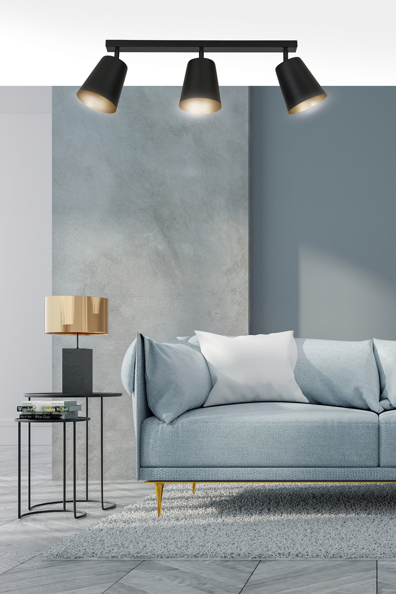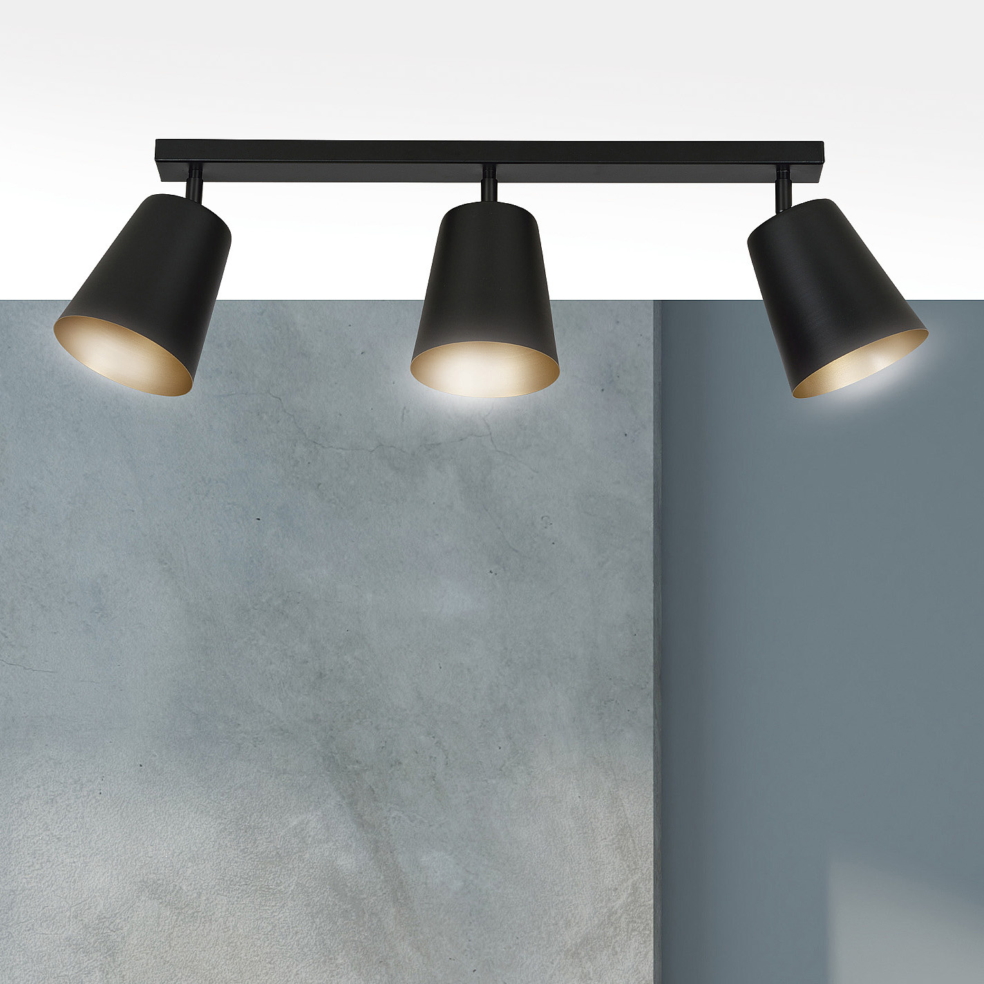 Raahe 3L Plafón triple direccional dorado y negro 3x E27