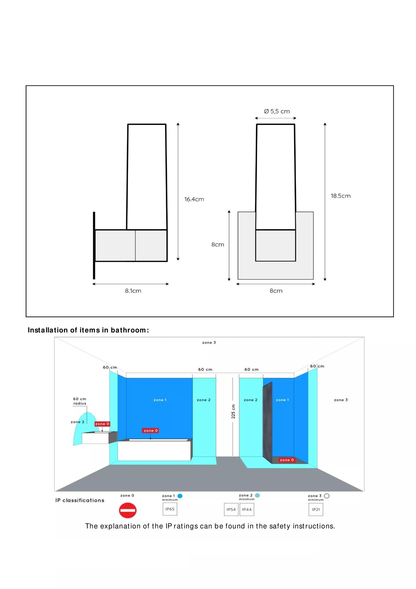 Especificaciones refinado aplique cilíndrico blanco y negro G9 IP44: