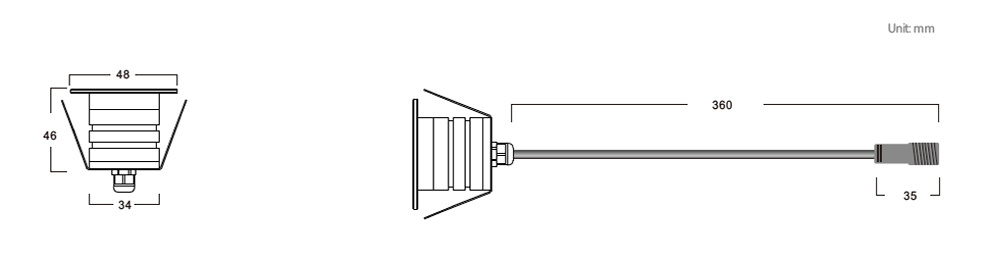 Especificaciones spot pequeño empotrable IP67 diámetro 48mm IP67 10 a 30V gran angular 90° :