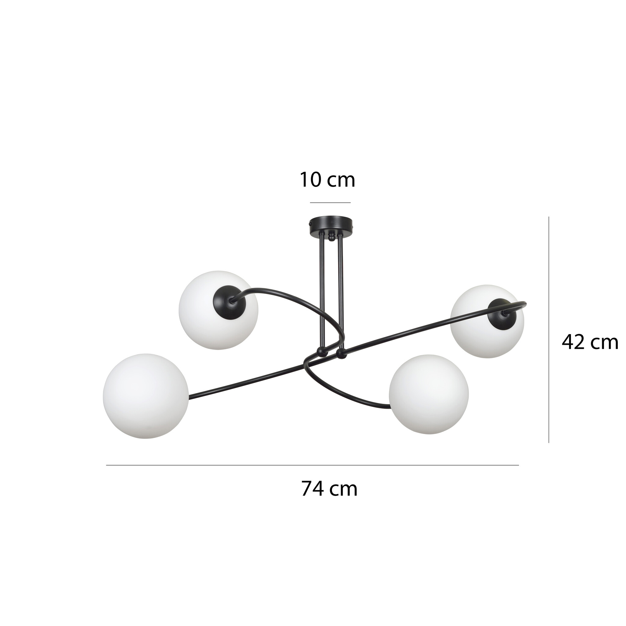 Tuusula 4L lámpara colgante negro con cristal blanco 4x E14