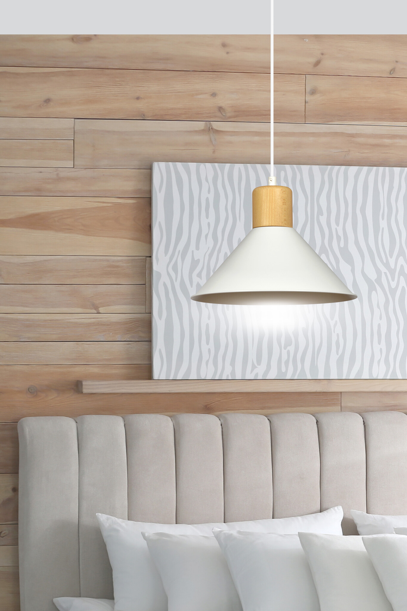 Vejen lámpara colgante escandinava cónica blanca con madera E27