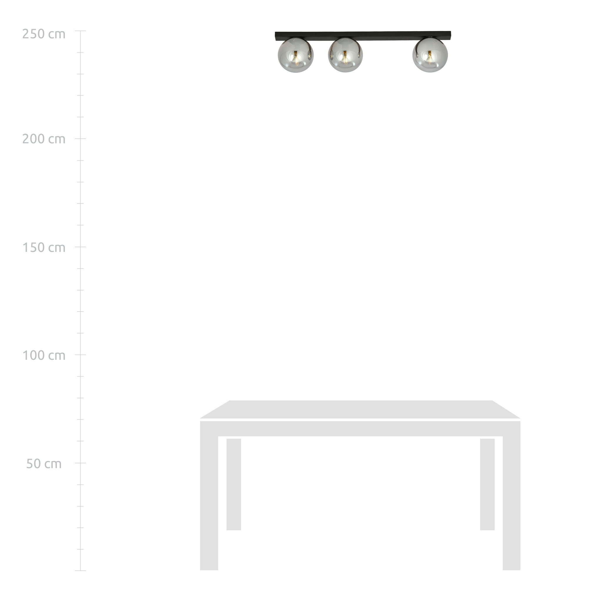 Spécifications Aalborg beau plafonnier long noir avec 3 ampoules fumées E14 :
