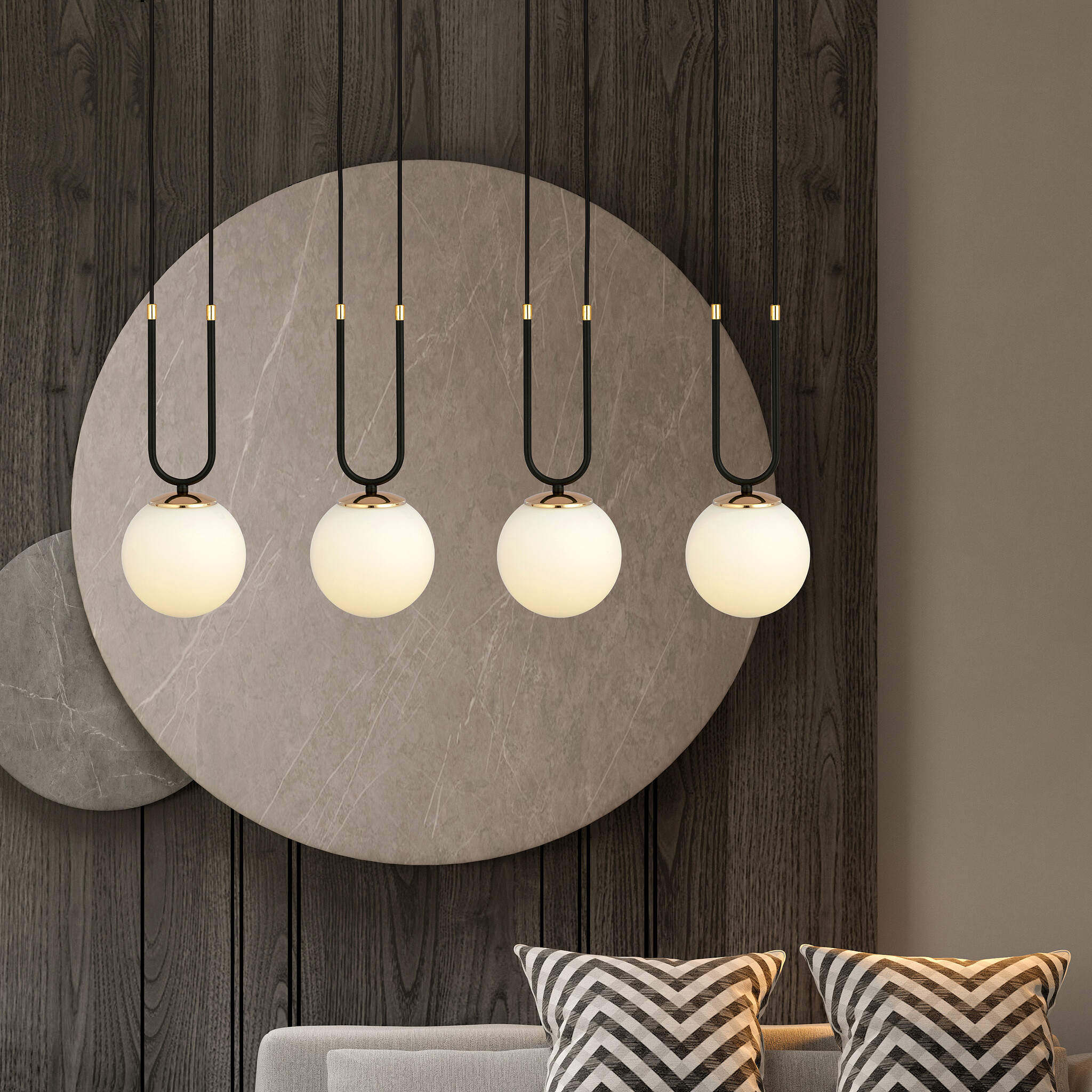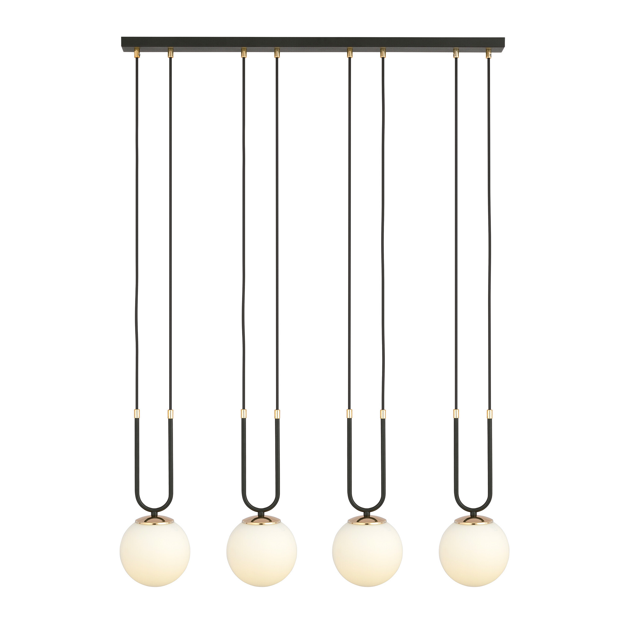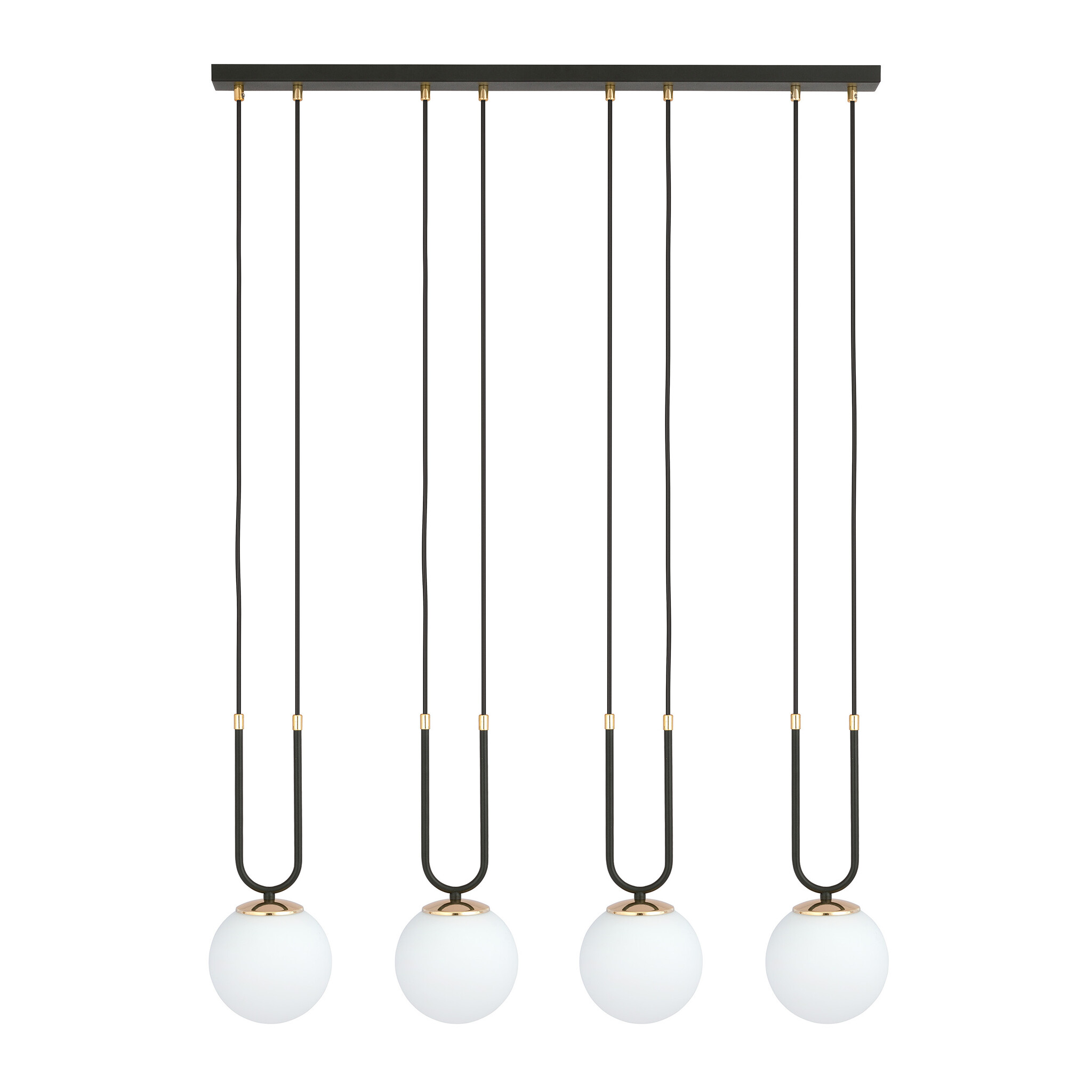 Spécifications Aarhus 4 lampes E14 grande suspension noire et opale 92 cm largeur :