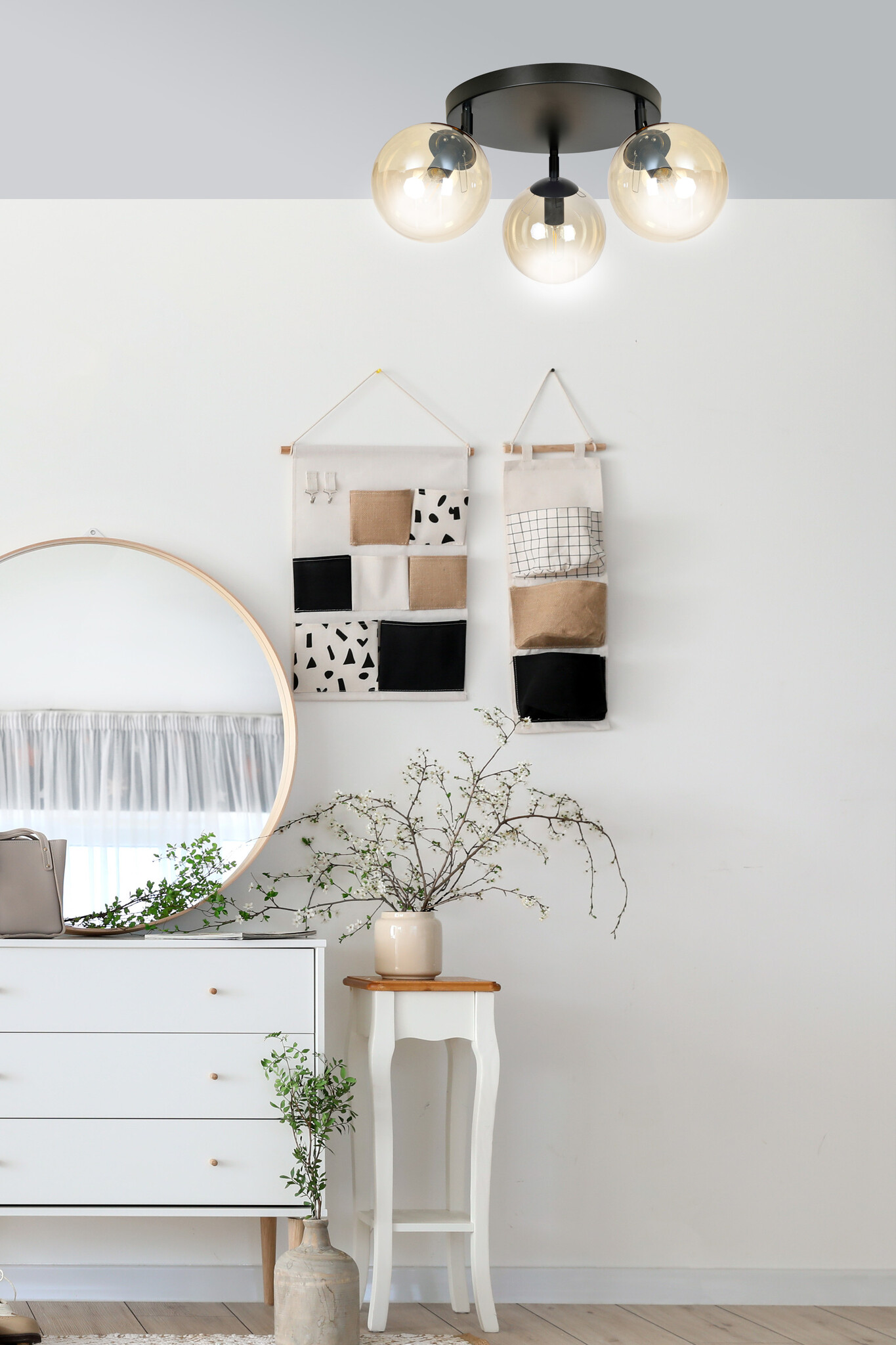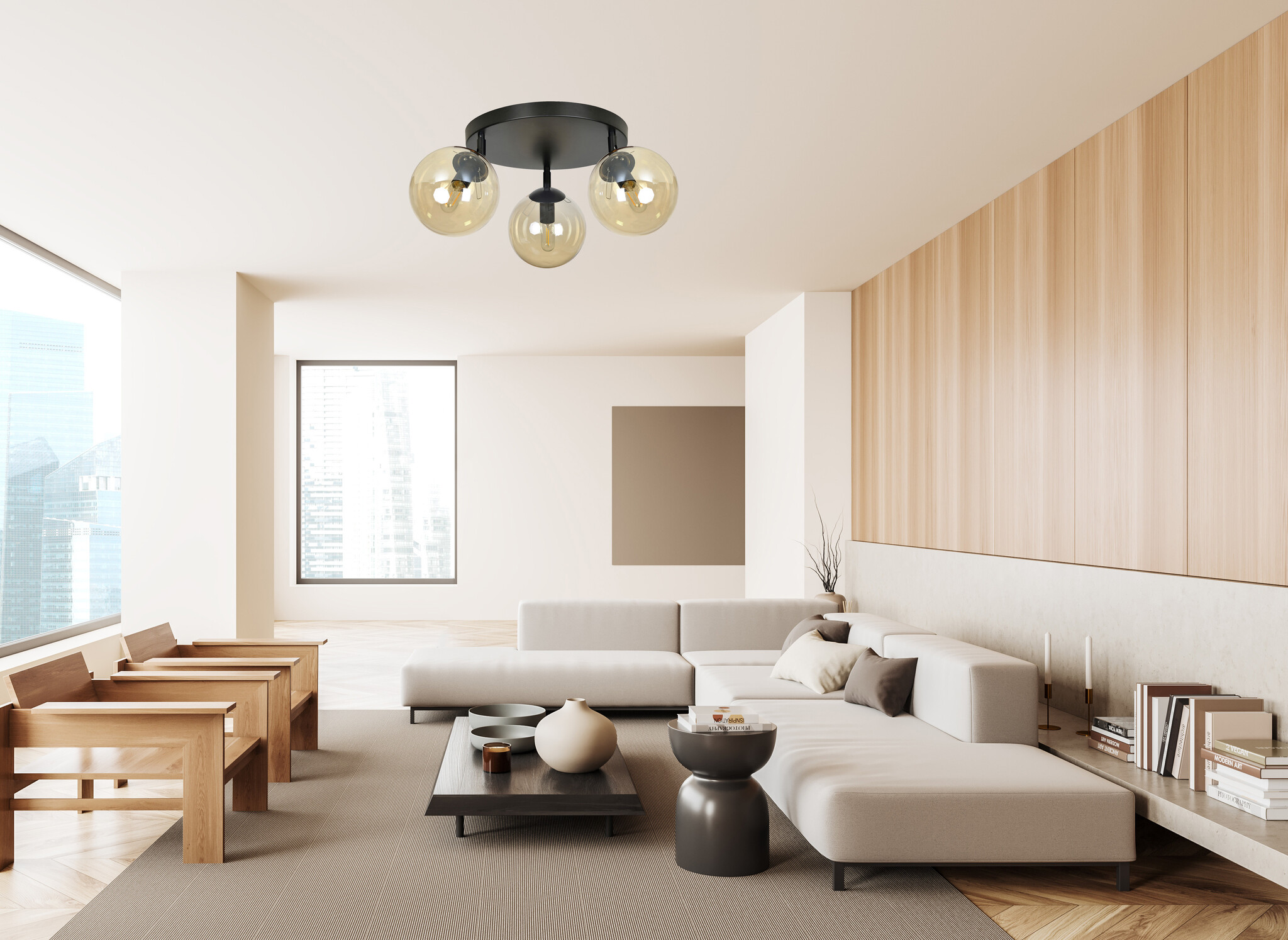 Spécifications Imatra ronde 3L boules en verre noir et ambré 3x E14 :