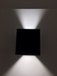 Cette applique d'extérieur LED 2x5W graphite/blanc/argent IP54 105mm a une forme quasi carrée. Les dimensions sont : 105 mm de hauteur, 119 mm de largeur, 100 mm de profondeur.