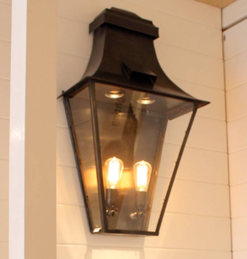Cette applique d'extérieur rurale bronze GU10+E27 90cm H est disponible en coloris bronze (fonte de laiton). Il existe également des versions moins chères avec 2 lampes (1xGU10 et 1xE27 ou 1xE27) ou avec 1 lampe (1xE27).