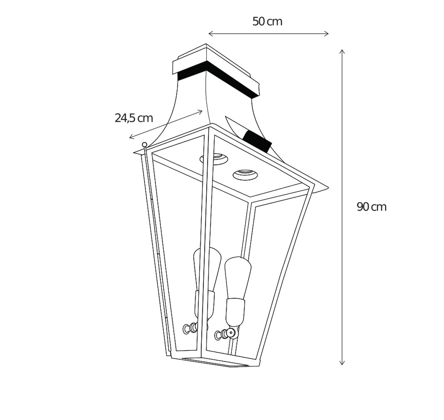 Les dimensions de cette applique d'extérieur rurale bronze GU10+E27 90cm H sont : Hauteur : 90cm, Largeur 50cm.