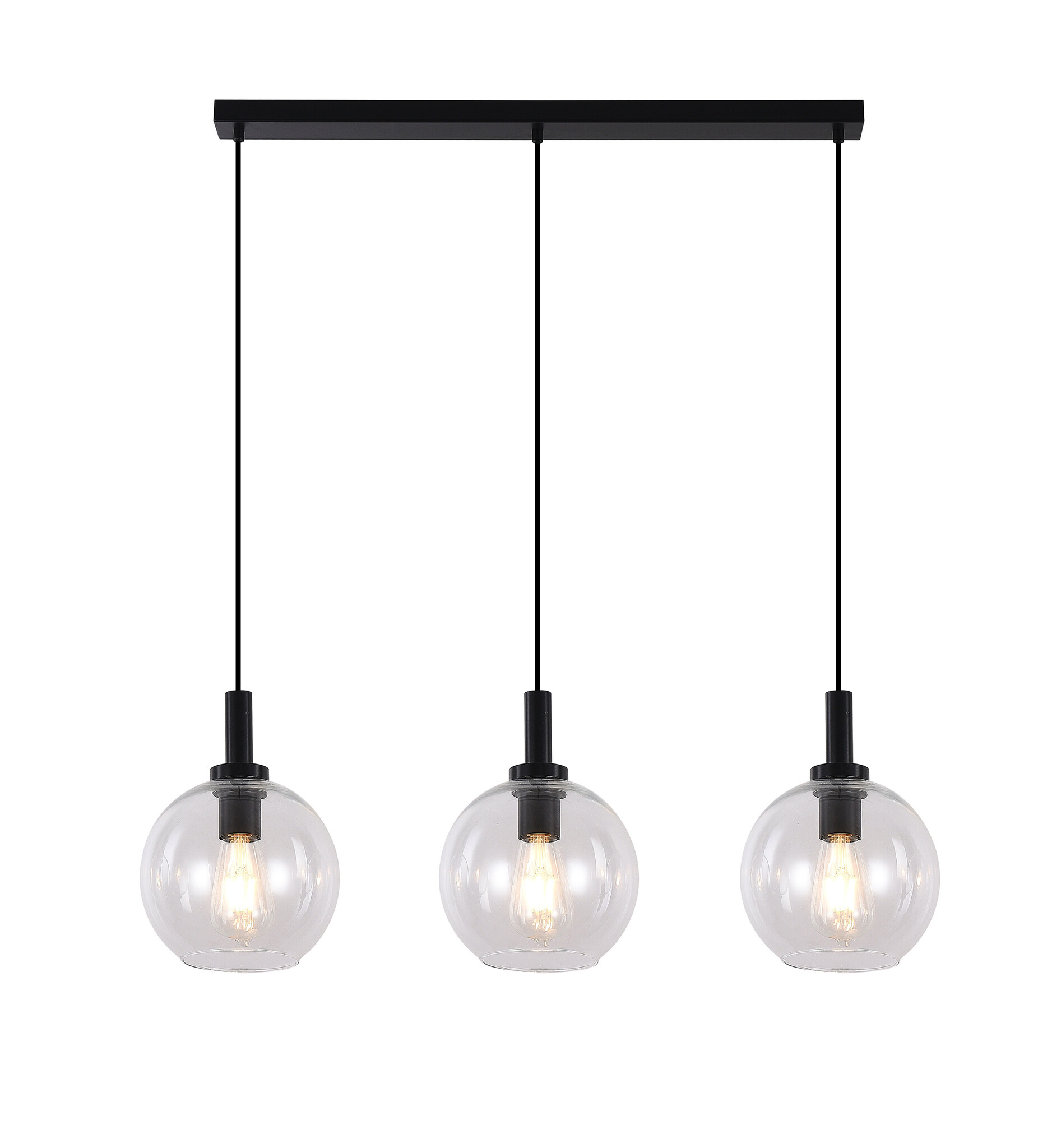 Aris élégante suspension E27 3L Noir, verre clair 3x Ø200mm