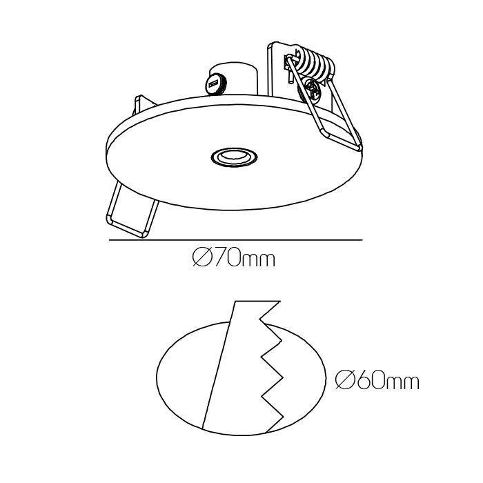 Spécifications Base intégrée 70mm Ø60mm pour suspension - blanc :