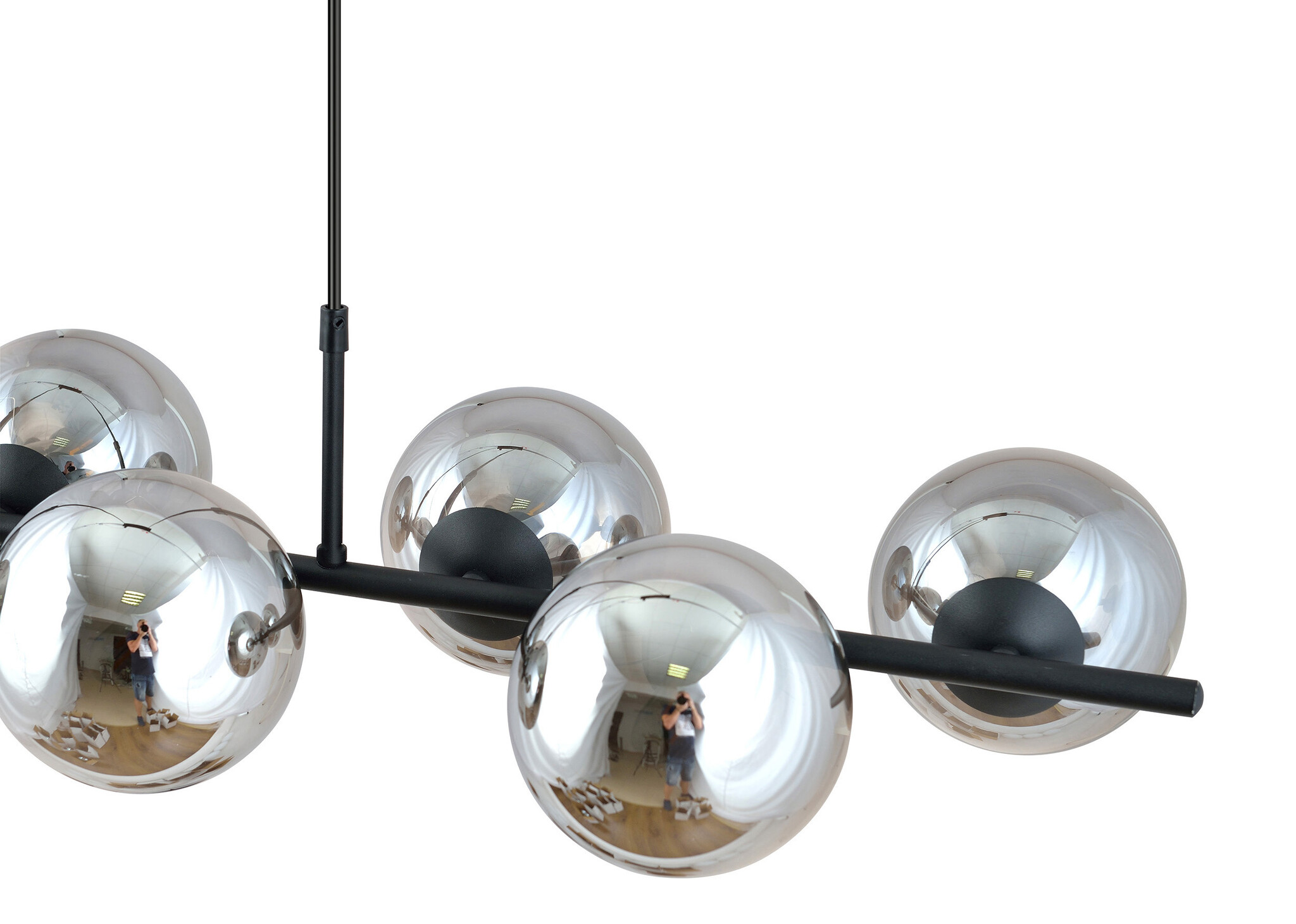 Spécifications belle lampe suspendue noire à 6 lampes avec ampoules en verre fumé et connexion e14 :
