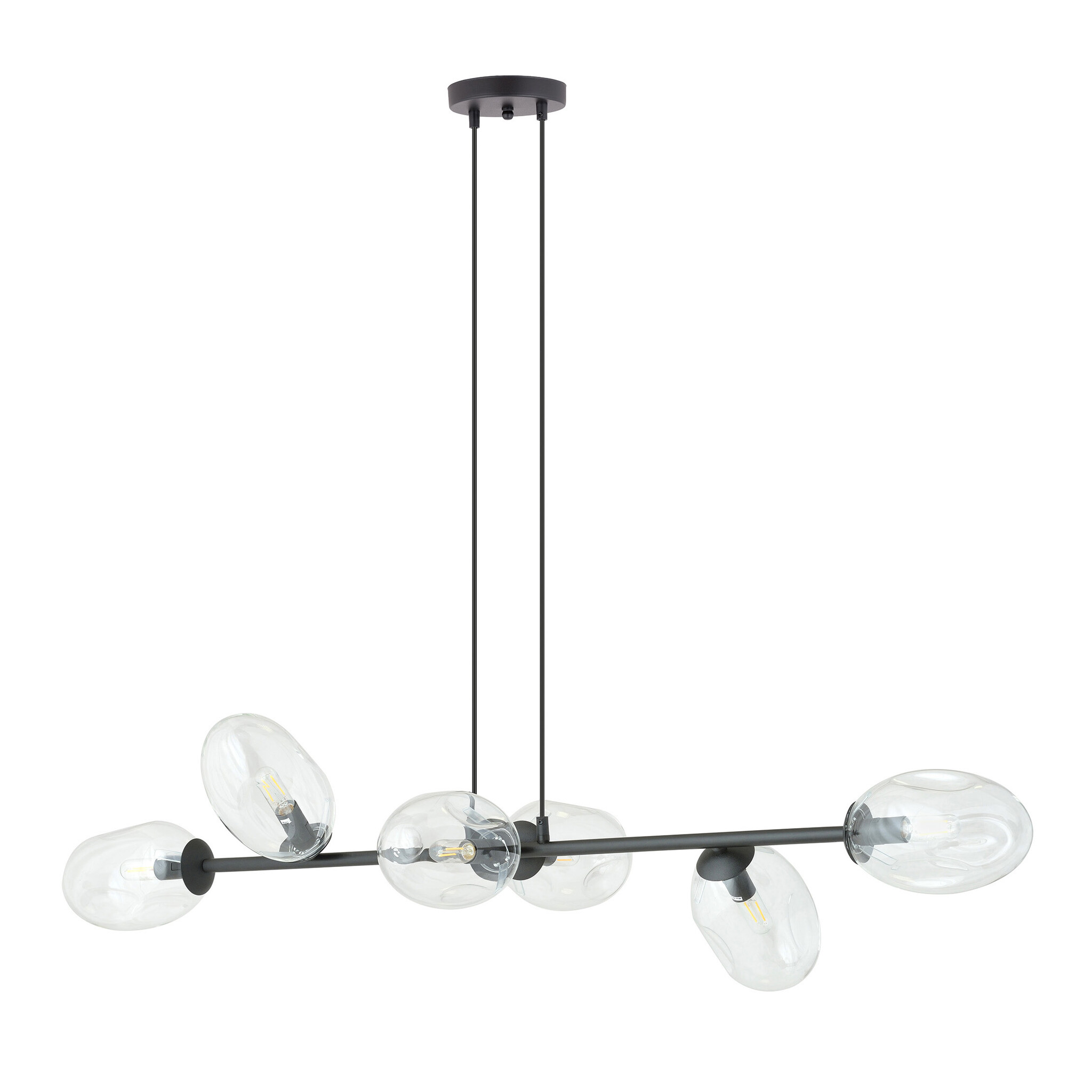 Spécifications exceptionnelle suspension noire avec 6x E14 verre transparent soufflé :