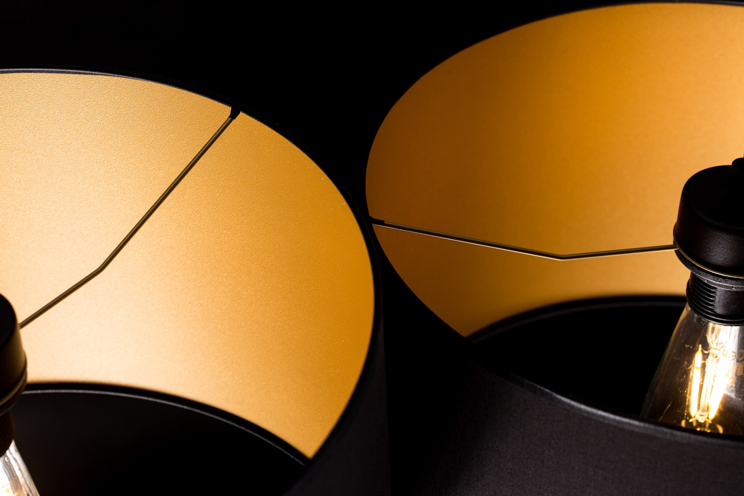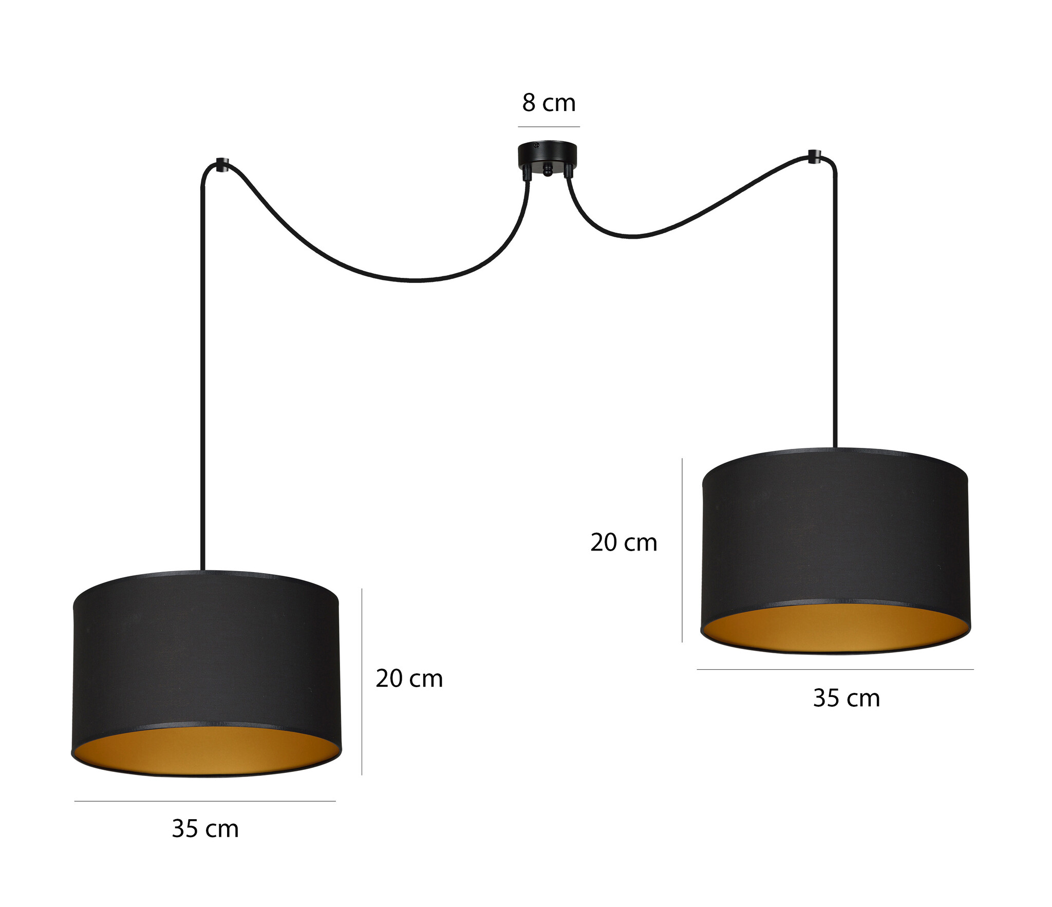 Goteborg double noir avec suspension dorée cylindre 2x E27