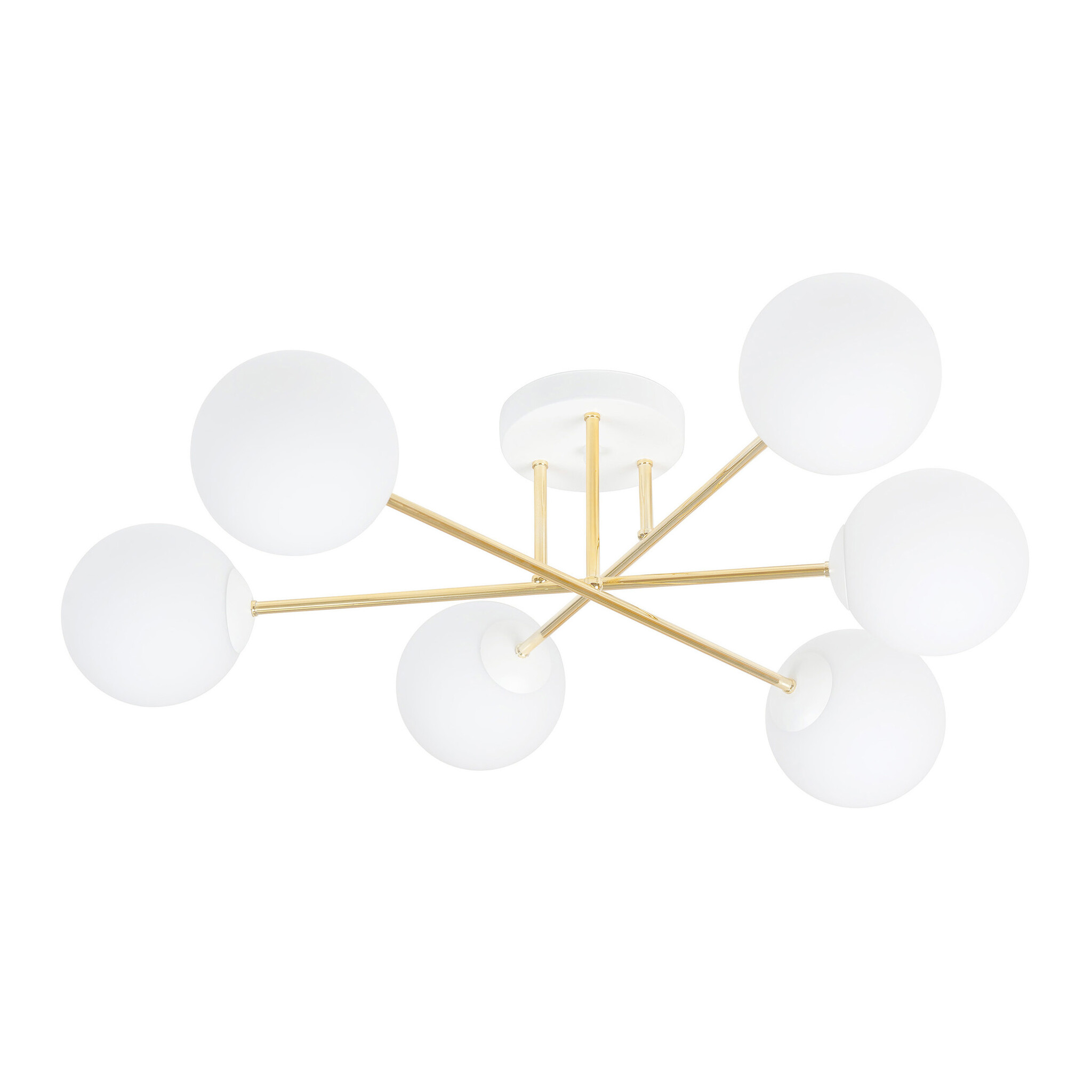 Grand plafonnier avec 6 boules en verre blanc E14