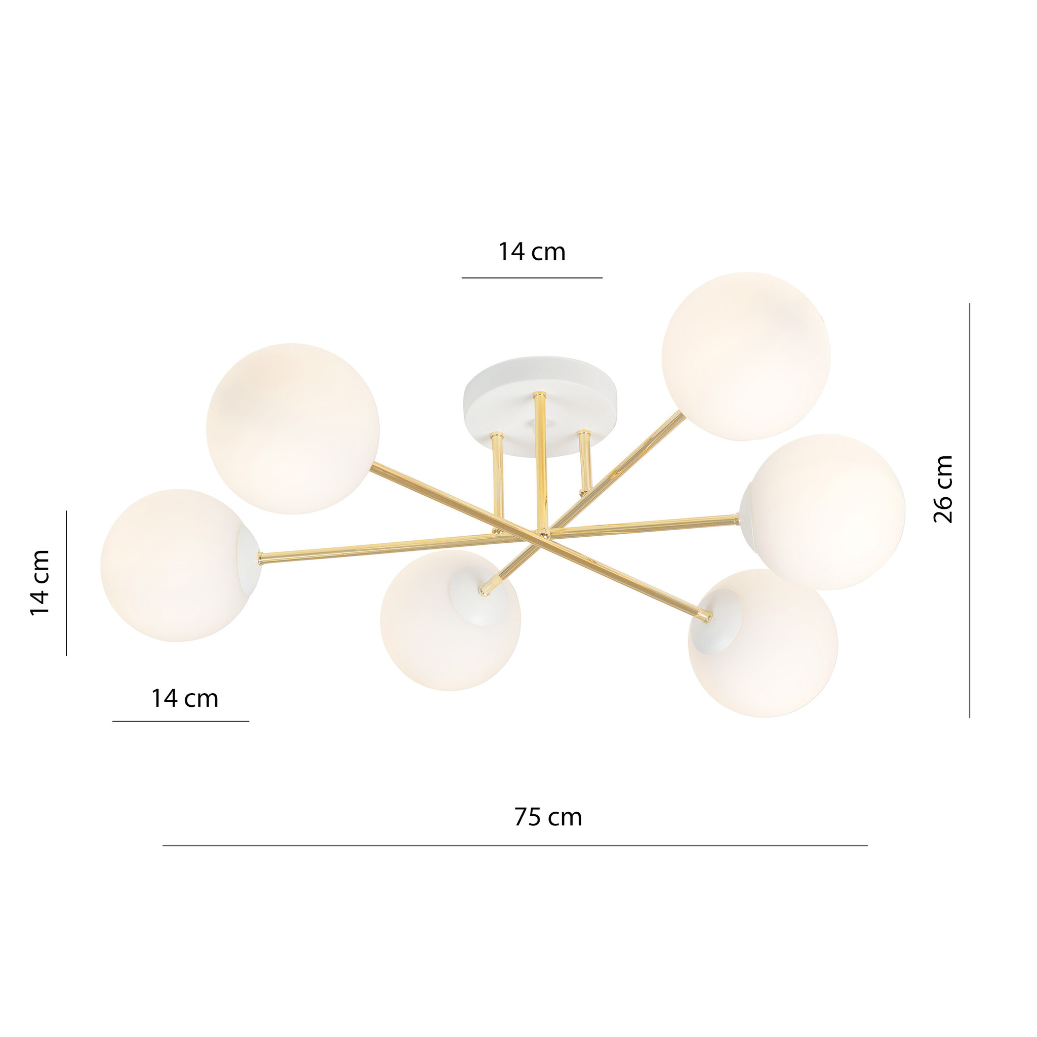 Spécifications grand plafonnier avec 6 boules en verre blanc E14 :