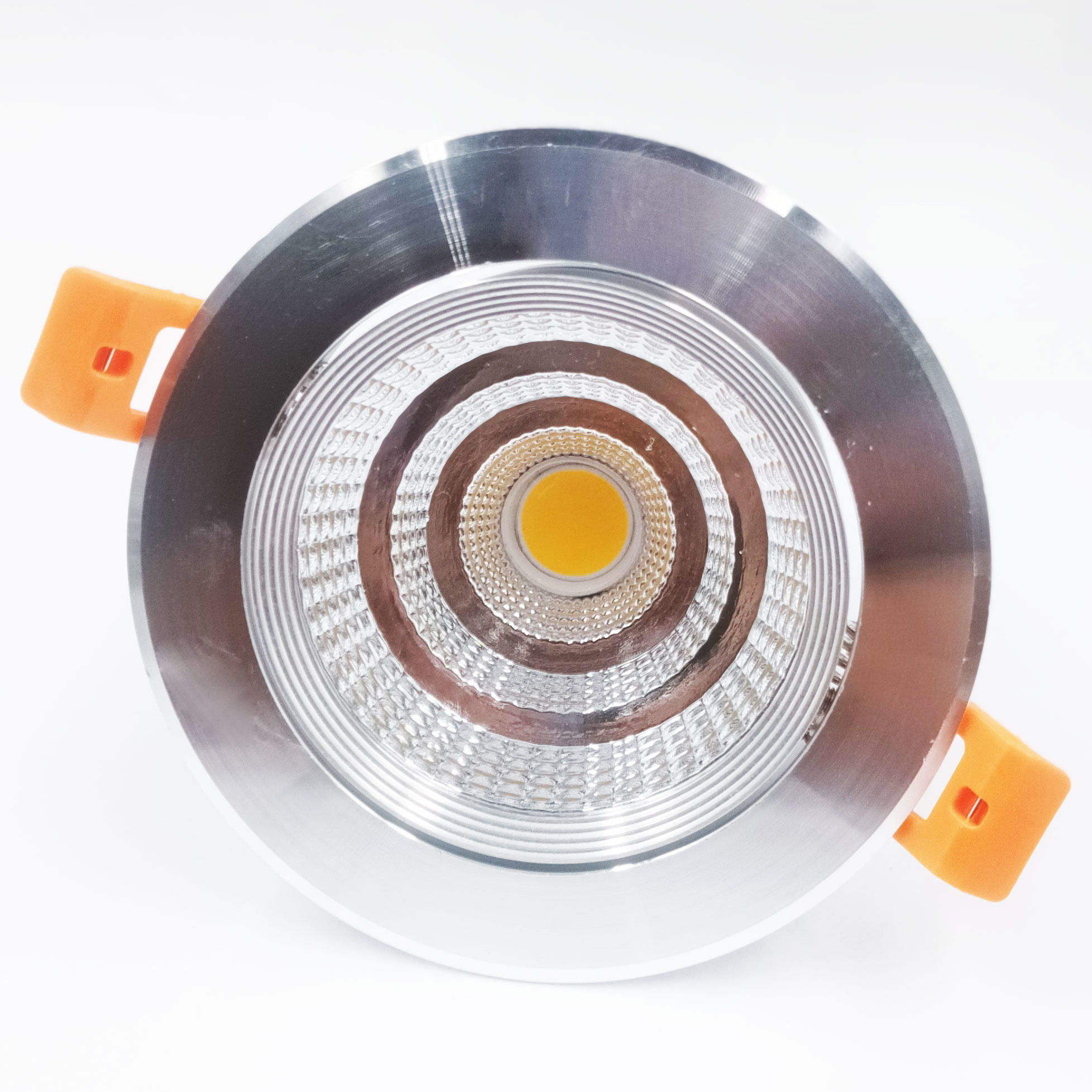 Ce grand spot encastrable dispose d'un module LED intégré de 30W. La présence du COB assure une bonne intensité lumineuse (2400-2700 lumens). Avec COB, différentes LED sont fortement concentrées en un tout homogène. Le résultat est une surface jaune. Plus la surface est jaune, plus la couleur est jaune. Plus la surface est claire, plus la couleur est claire ou froide.