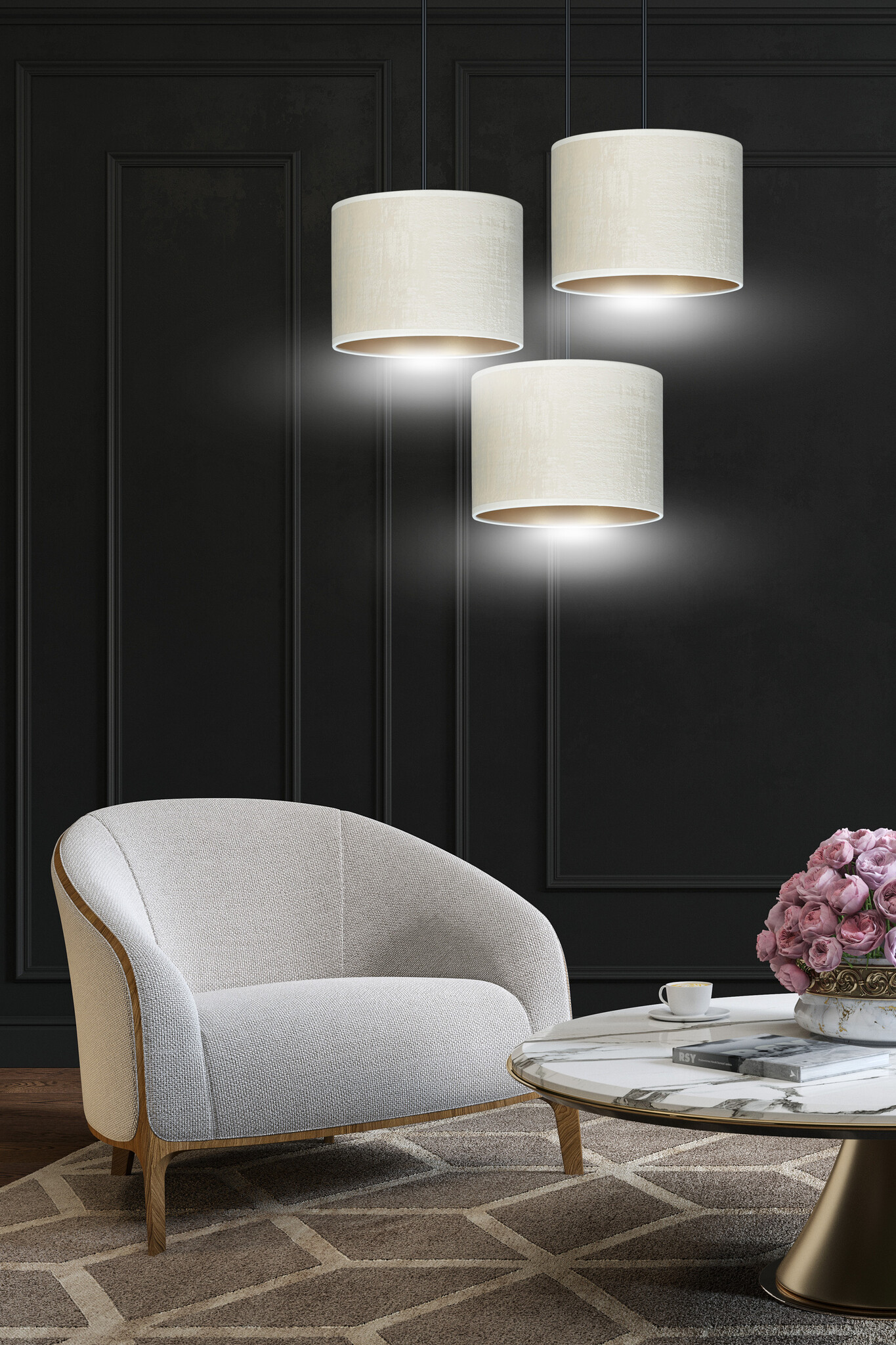 Jammerbugt 3 lampes suspension beige abat-jour ronds 3x E27