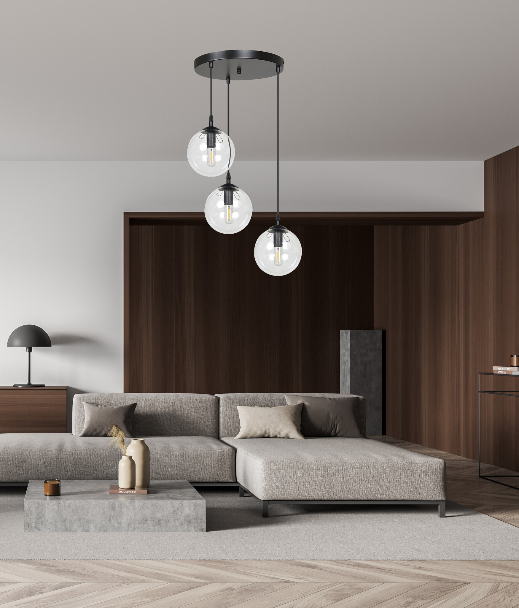 Kerteminde triple ampoules rondes transparentes 14 cm suspension E14