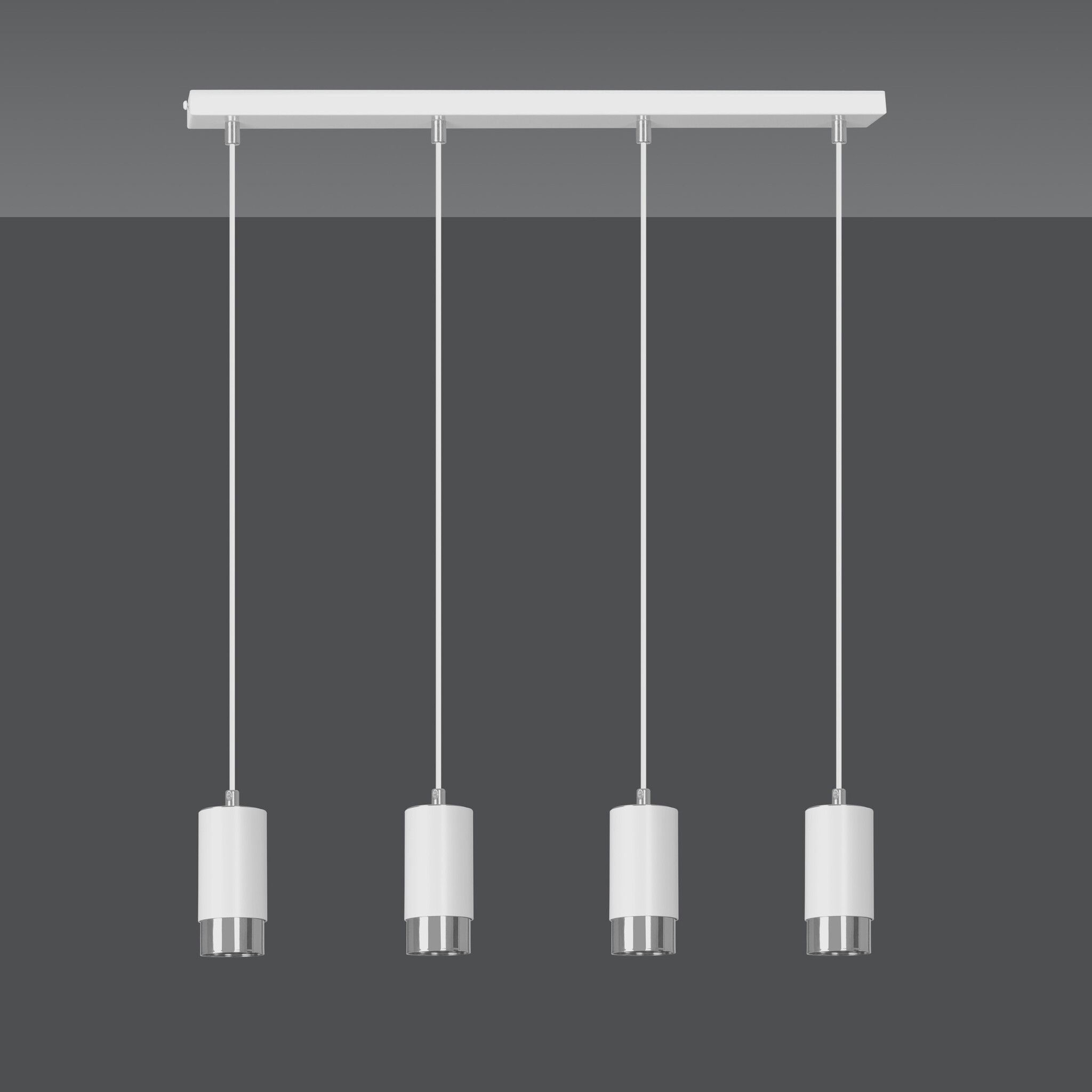 Lampe à suspension Karlstad 4L blanche et cylindre chromé GU10