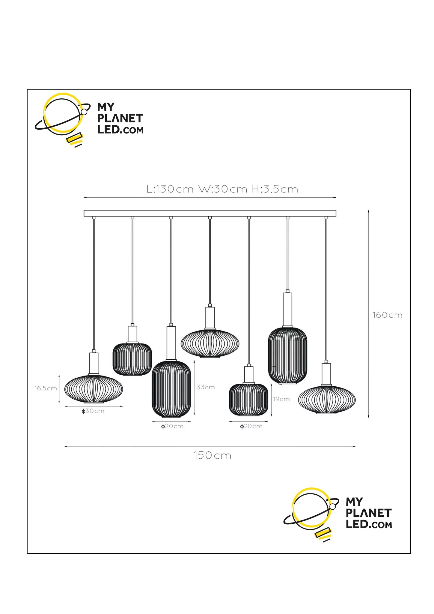Spécifications lampe suspendue Moema 7xE27 ambre :