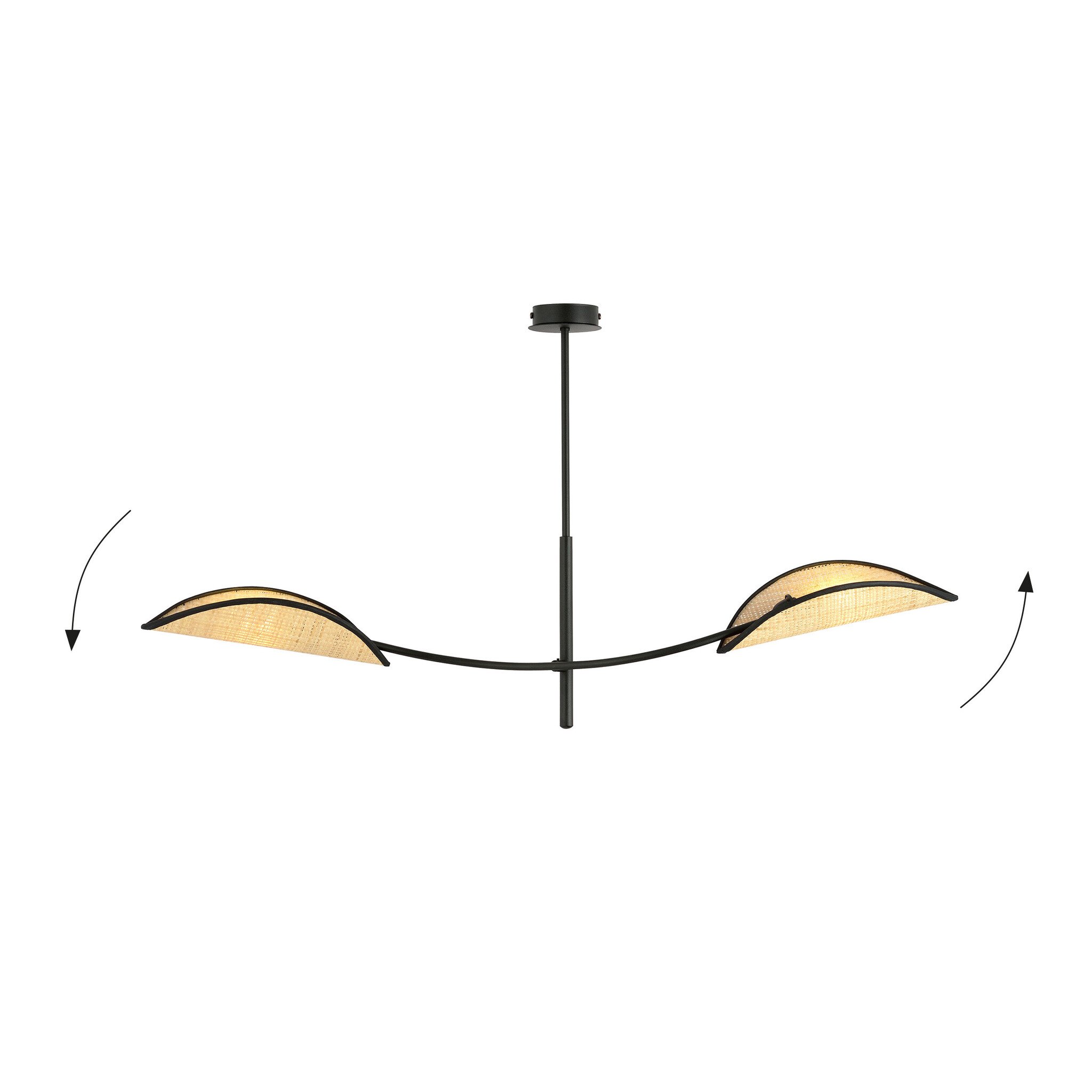 Spécifications lampe suspendue noire et rotin à 2 bras courbés :