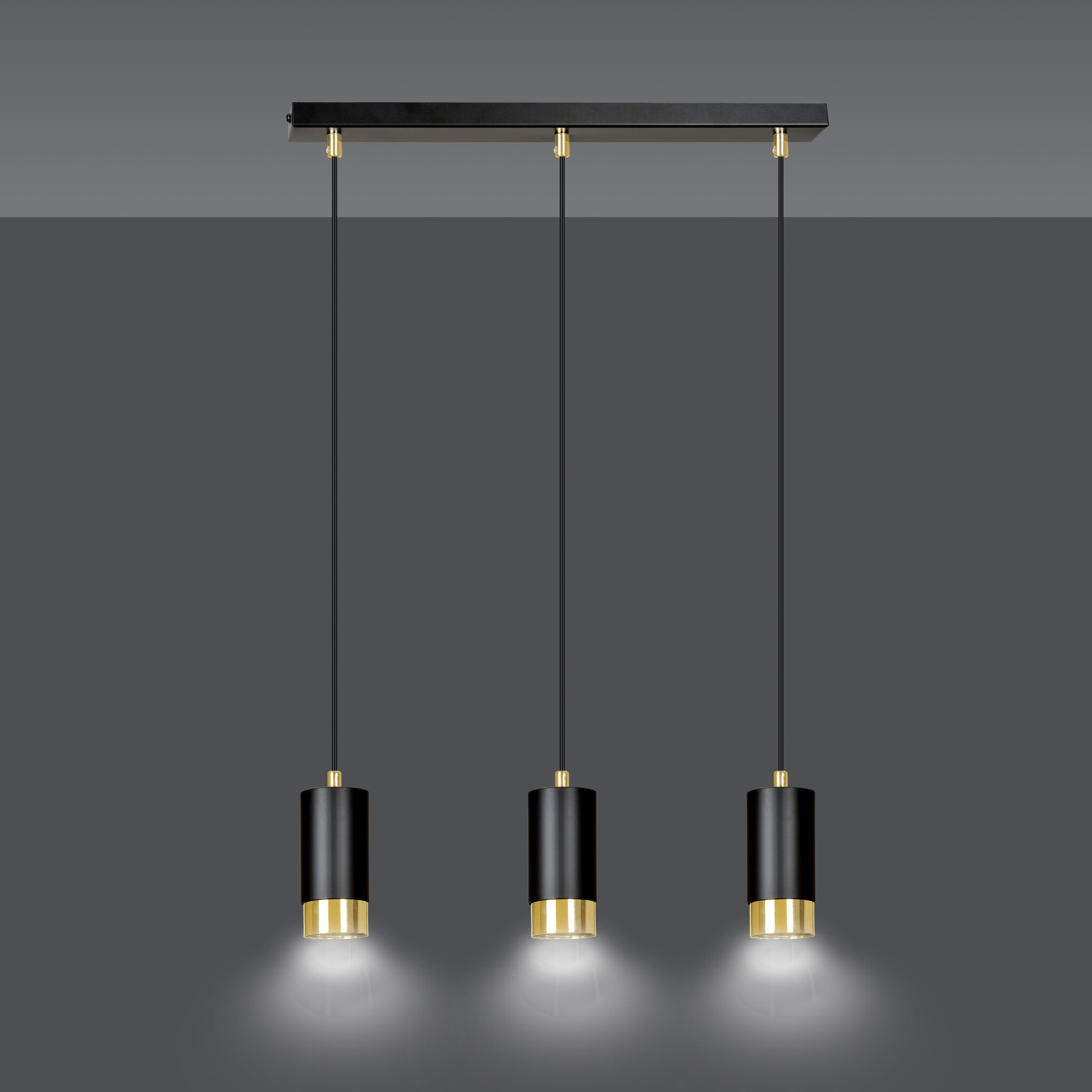 Lampe à suspension noire Karlstad 3L avec tube doré GU10