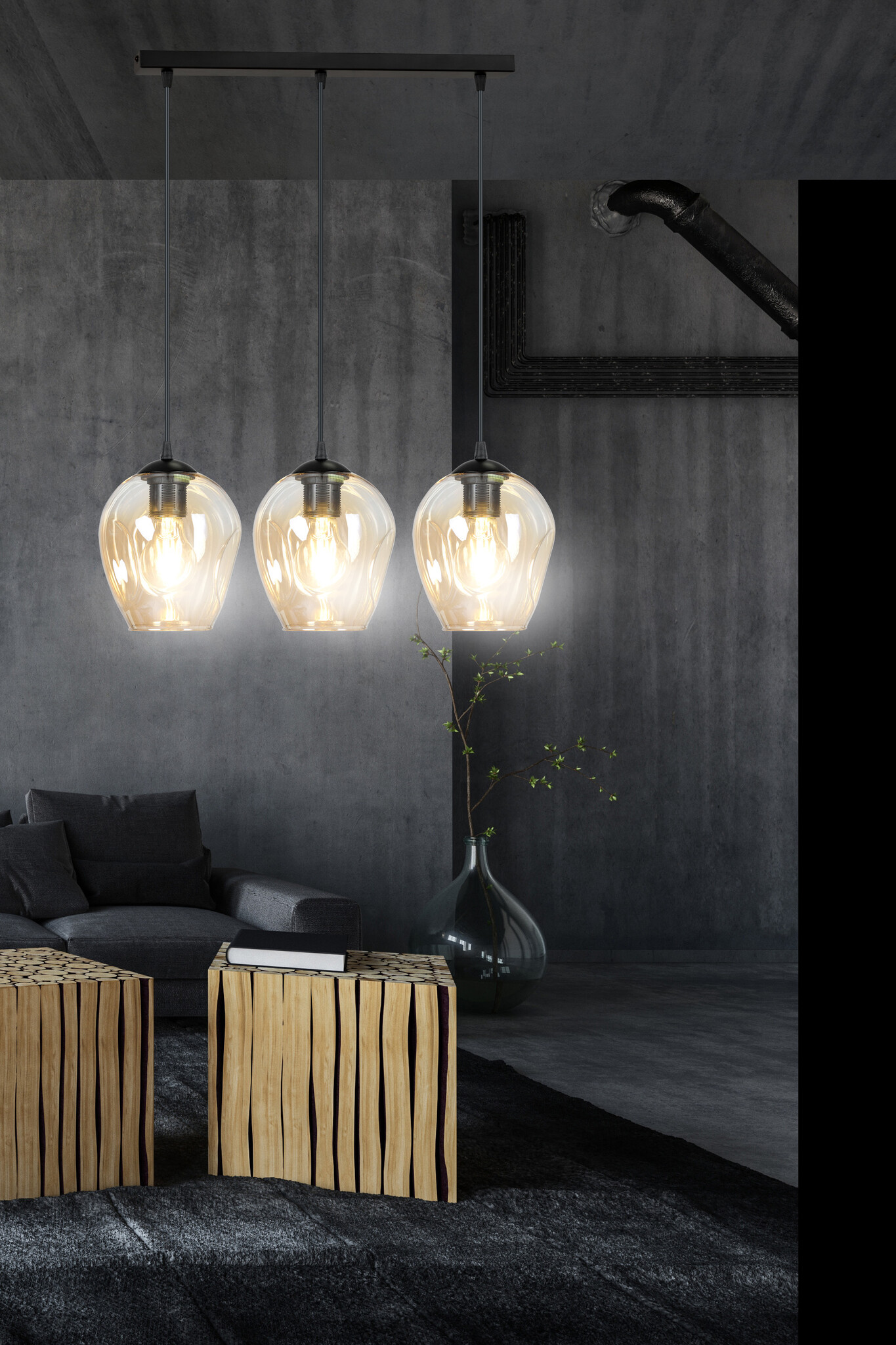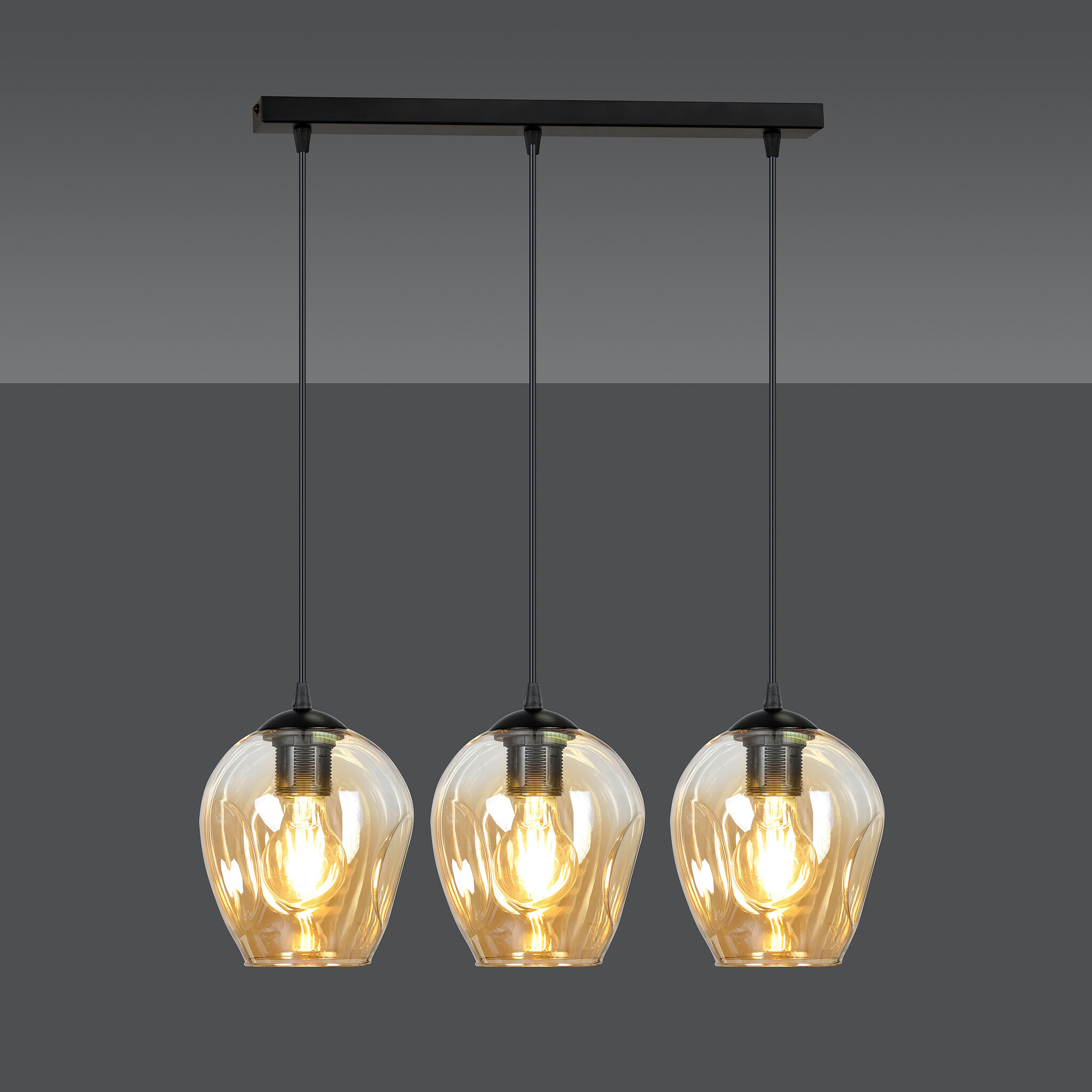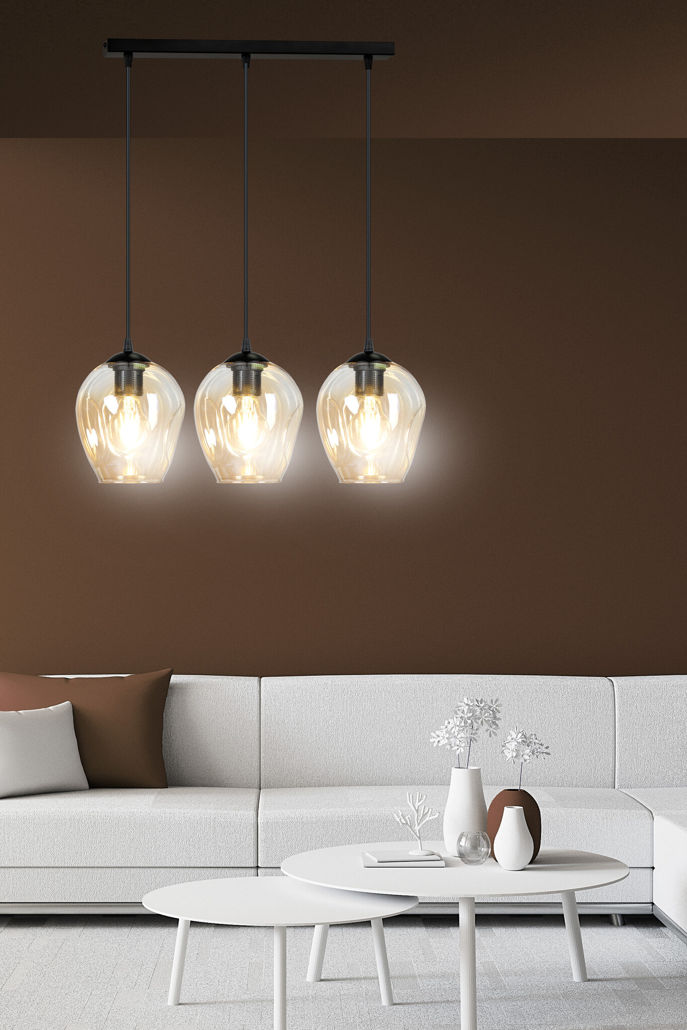 Lampe à suspension Nokia longue 3L en verre ambré 3x E27