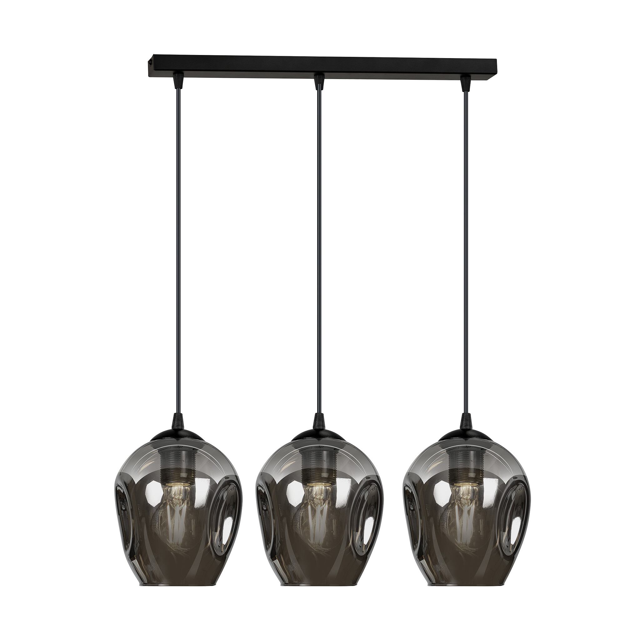 Lampe à suspension Nokia longue 3L en verre fumé 3x E27