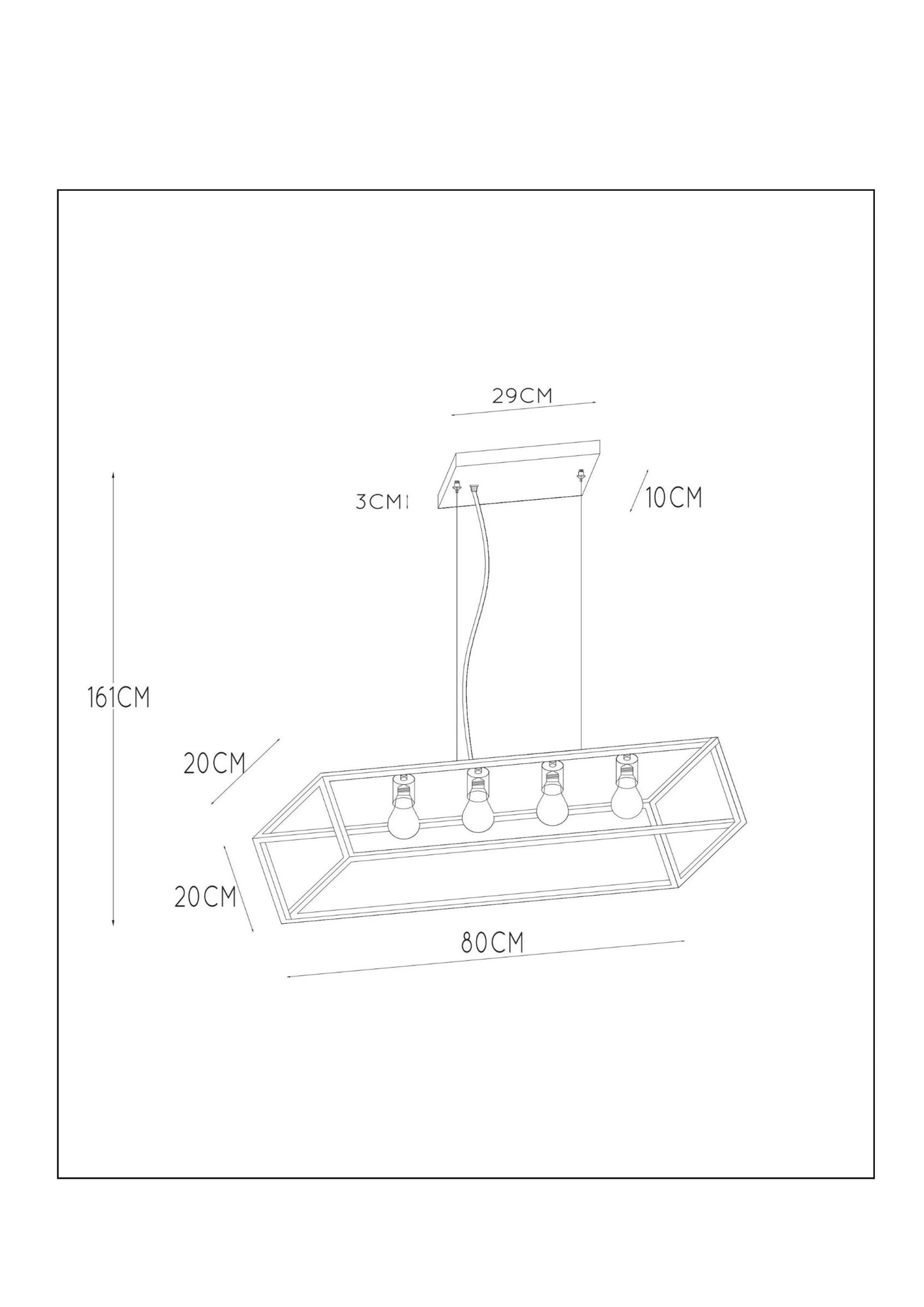 Spécifications lampe suspendue rectangulaire inclinée 4xE27 noire :