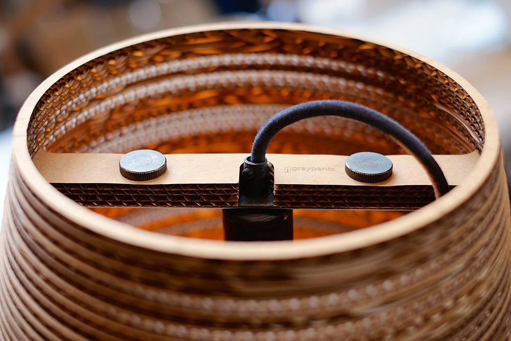 Commandez cette lampe de bureau design carton blanc ou beige 1xE27 Ø 34cm chez My Planet LED