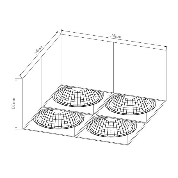 Spécifications lampe moderne 4 spots carré blanc 12W :