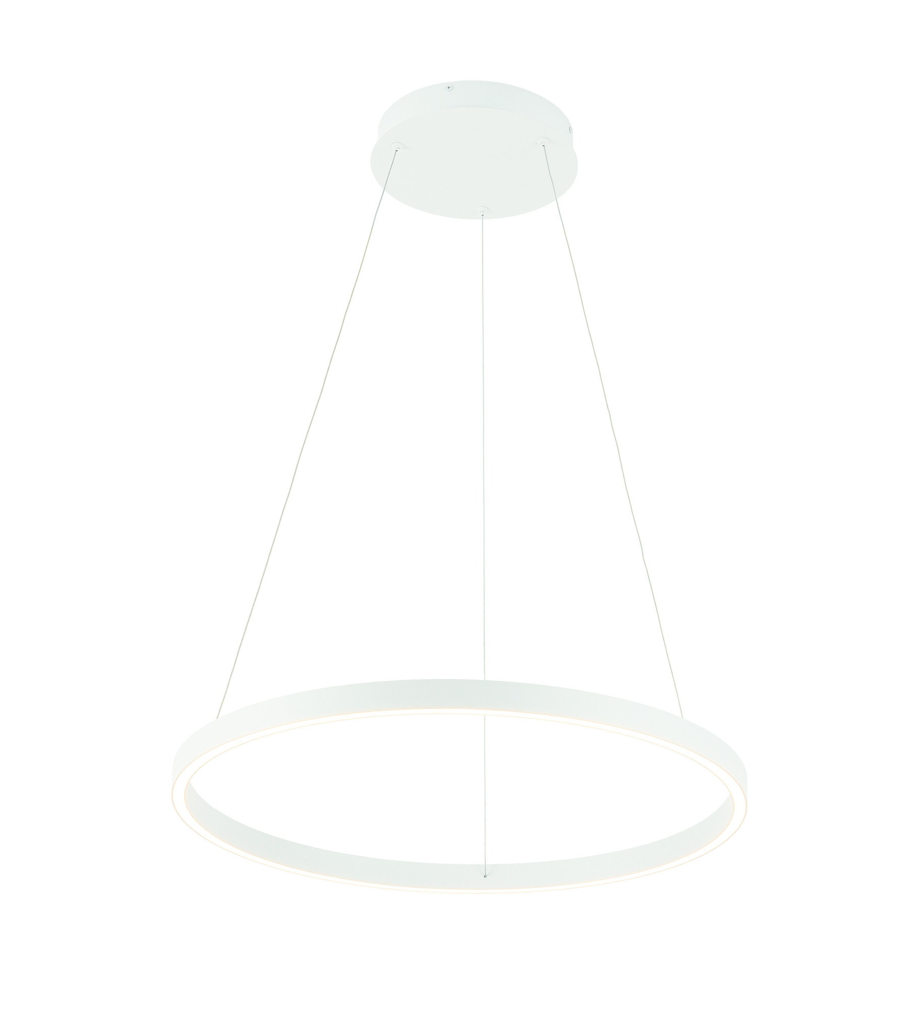 Les modules LED ont une intensité lumineuse de 1890 lumens (noir) ou 2970 lumens (blanc). Il offre un éclairage d'ambiance au-dessus de la table à manger. Grâce à sa forme ronde, il peut être utilisé partout : éclairage de salon, éclairage de chambre, éclairage de cuisine, mais aussi éclairage d'hôtel, éclairage de magasin ou éclairage de restaurant. Ce lustre rond est disponible en noir ou blanc. Il existe dans la même série un anneau flottant moyen et un très grand anneau lumineux .