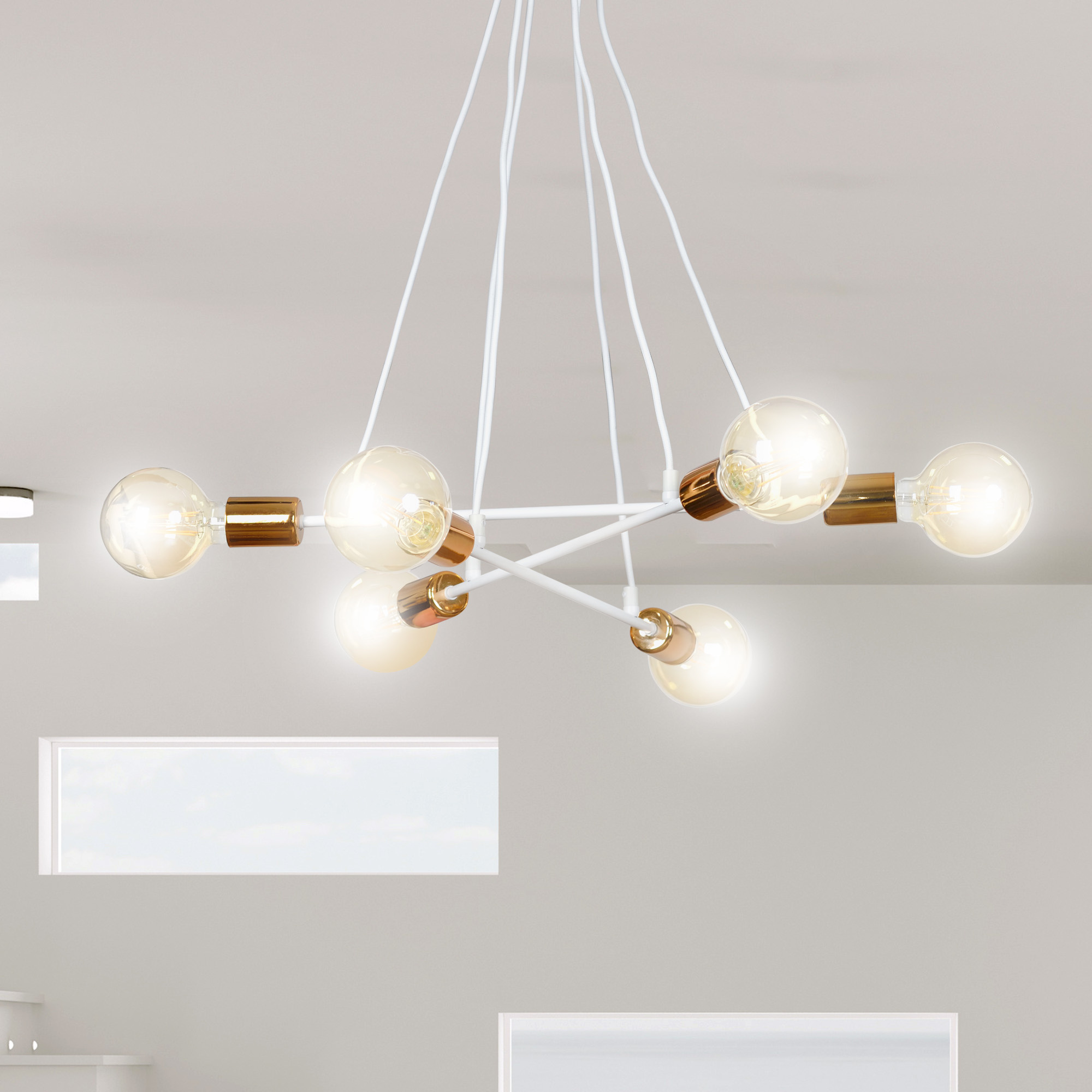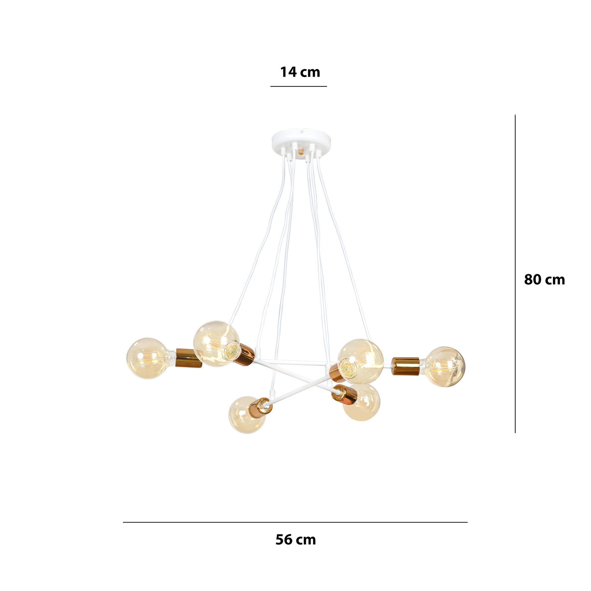 Lampe suspendue Hollola 6L blanche avec cuivre E27