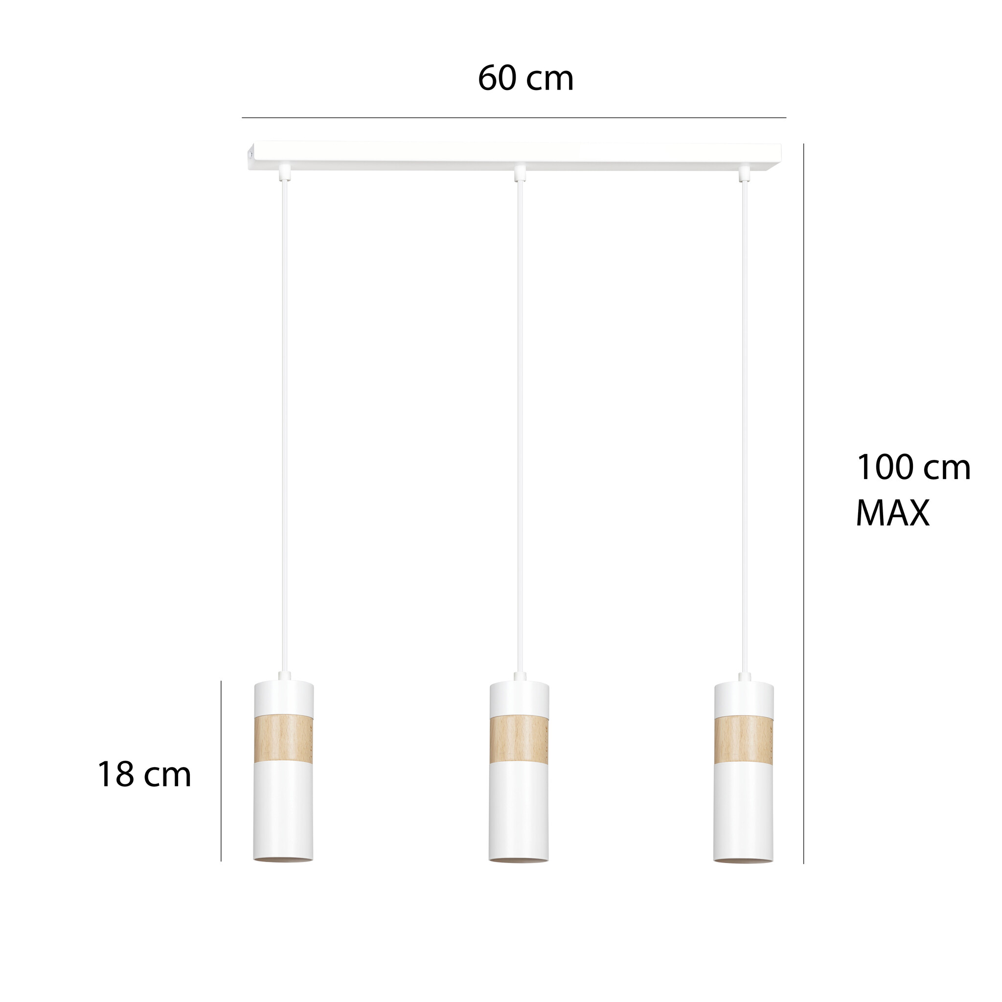 Spécifications Lampe suspendue Kerava longue 3L blanche et bois 3x GU10 :
