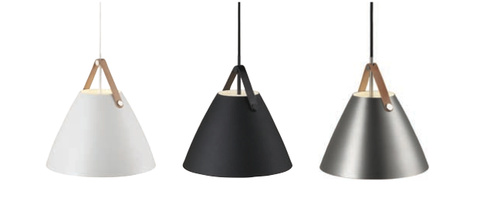 Cette suspension est très scandinave ! Son design simple d'abat-jour en métal, combiné aux lanières en cuir, lui confère une belle apparence dans un intérieur moderne !