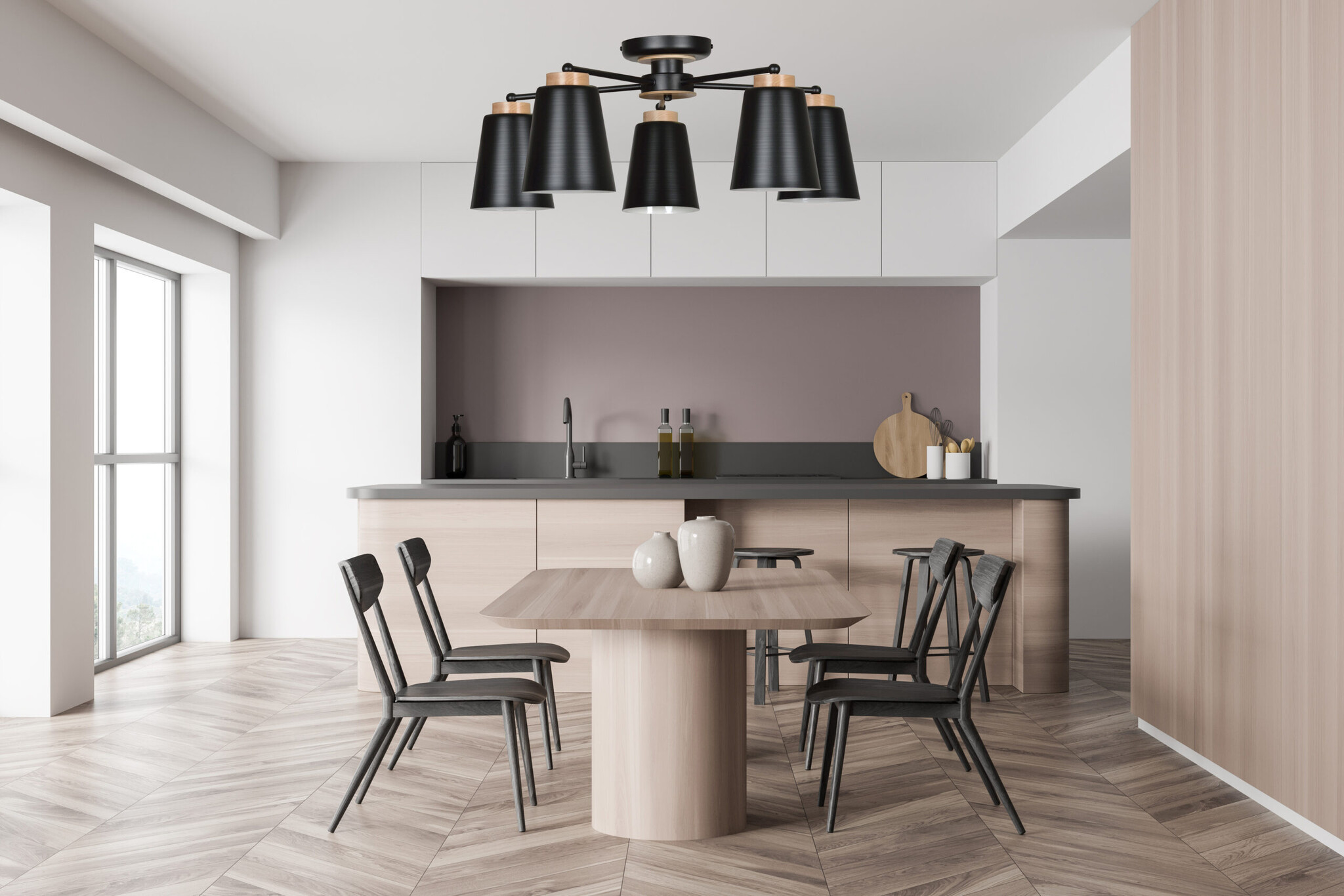Linkoping 5L noir avec plafonnier bois 5 abat-jour métal E27
