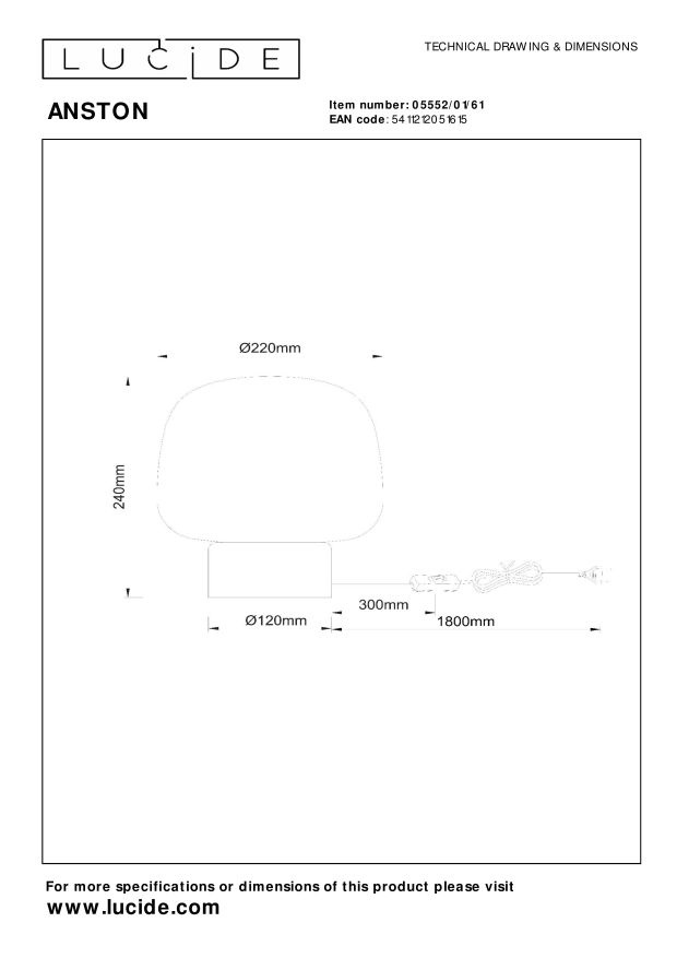 Spécifications Lucide ANSTON - Lampe de table - 1xE14 - Opale :