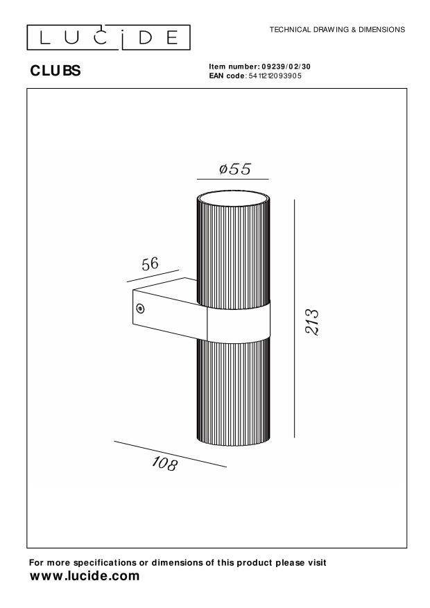 Lucide CLUBS - Spot mural / Applique - 2xGU10 - Noir