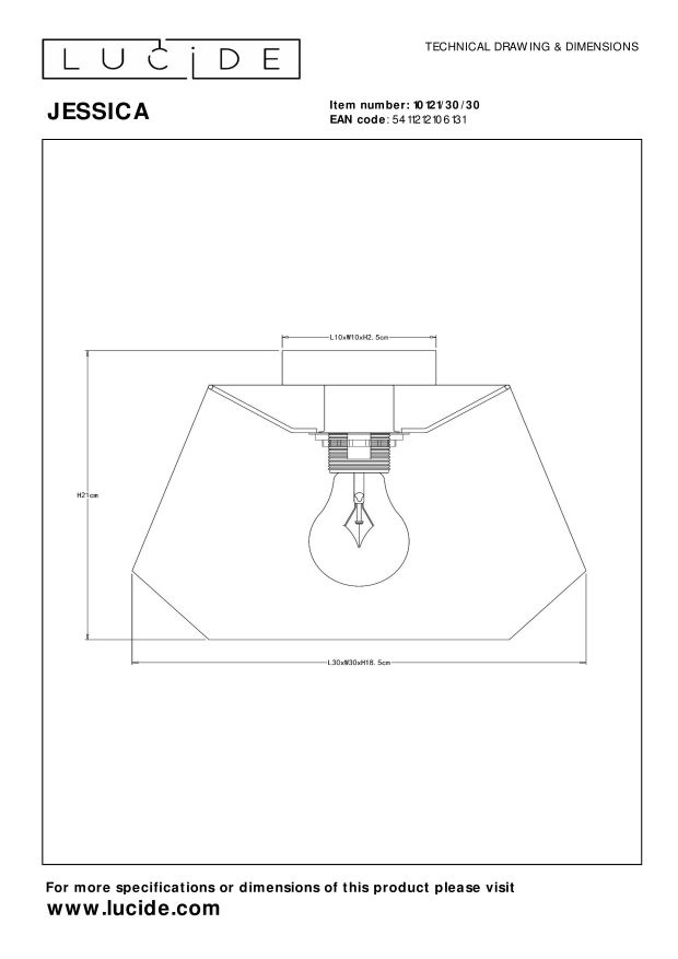 Spécifications Lucide JESSICA - Plafonnier - Ø 30 cm - 1xE27 - Noir :