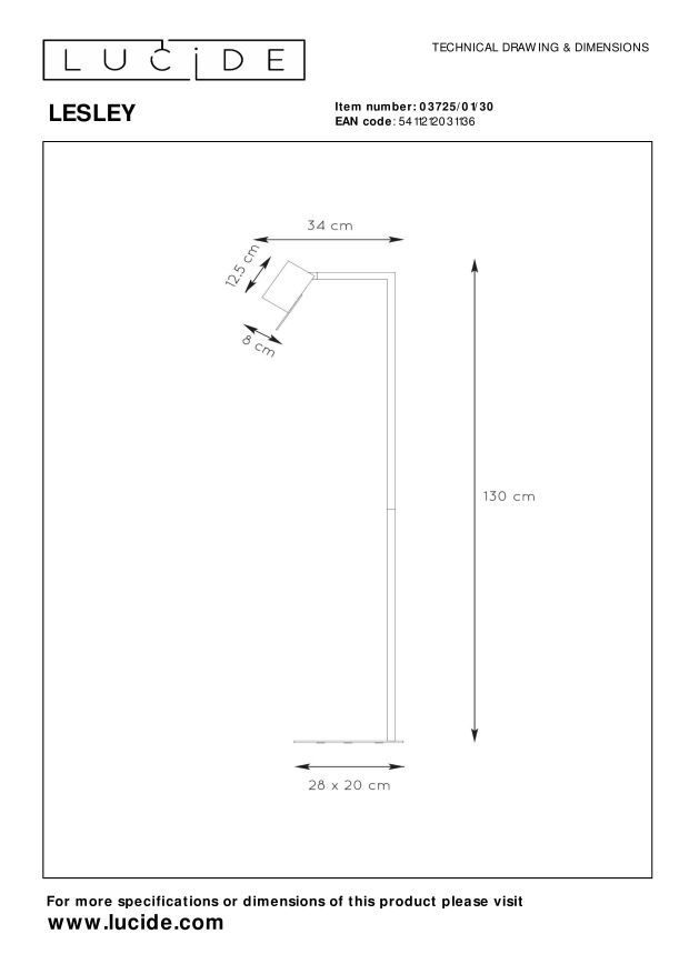 Spécifications Lucide LESLEY - Lampe de lecture - 1xGU10 - Noir :